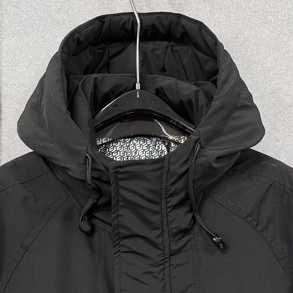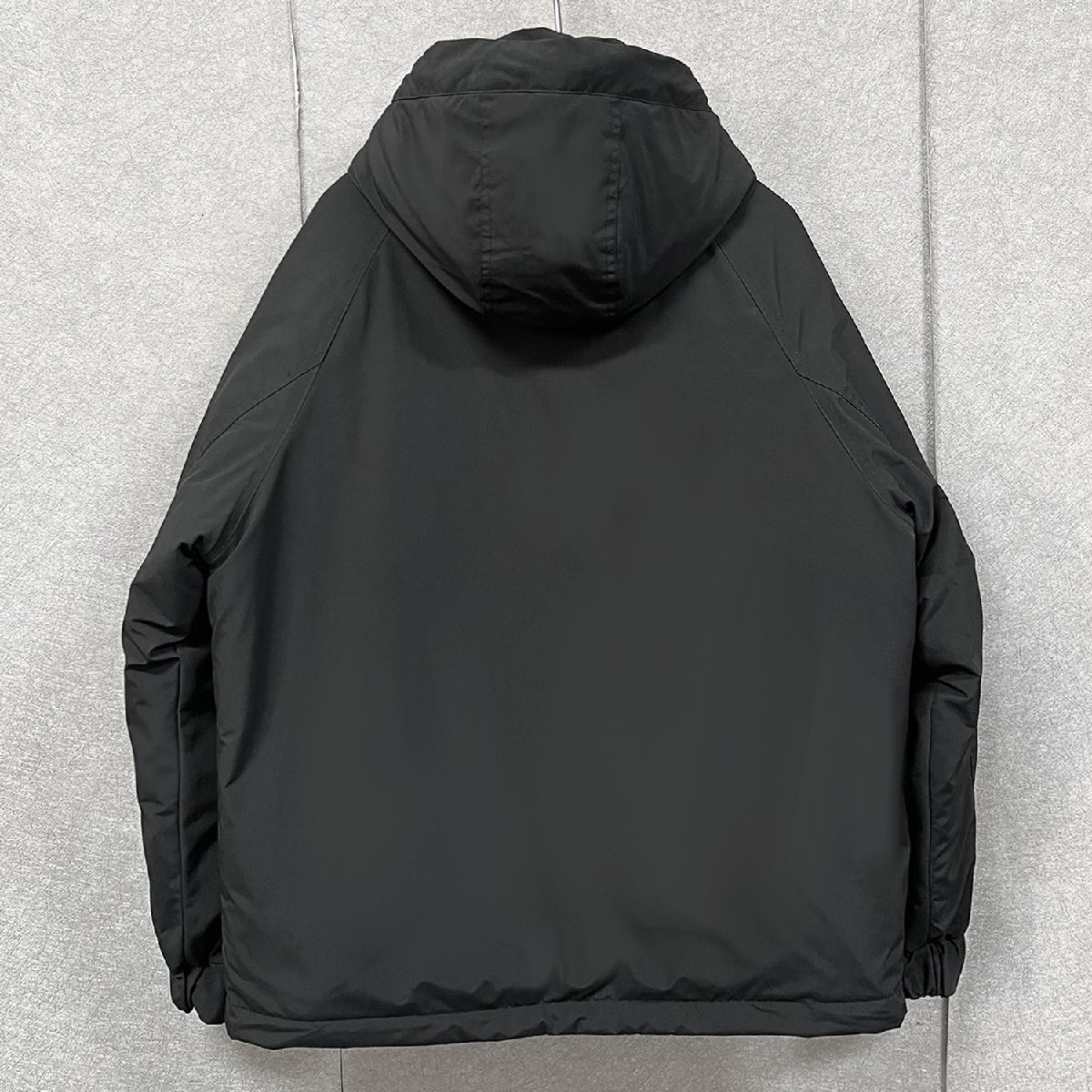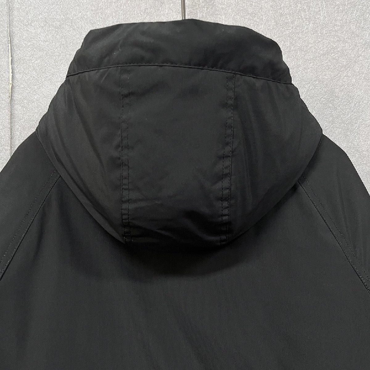 左胸と左袖にロゴ入り、スタイリッシュさをプラス。フード付きデザインしかもファスナーで首まで引上げ可能で、外部の冷たい空気を遮断することができます、しっかりと首まわりを保護されます。袖口はマジックテープで調整可能で、風が強い日などは締めて防風、温かさを保ちます。フードは取り外し不可となり、中にはドローコードが入って絞ることができます。裾部分もドローコード付き、シルエット調節がしやすくなっています。両側のポケットにファスナーがあって、小物紛失防止、便利に収納できます。