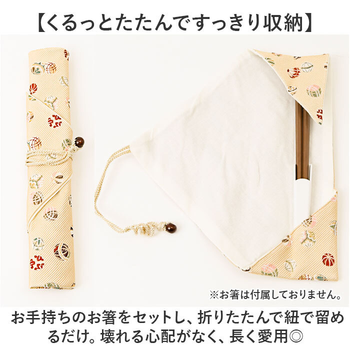 | 商品説明 | ・・【持ち歩き用お箸の相棒に】 ・箸を持ち歩くことは、優しさを抱き暮らすこと♪おしゃれに持てる「一双 京西陣箸袋」。 ・【趣のある和の雰囲気たっぷり】 ・繊細な刺繍を施した、上品な仕上がり。わっぱ弁当箱などとの相性も抜群。 ・【くるっとたたんですっきり収納】 ・お手持ちのお箸をセットし、折りたたんで紐で留めるだけ。壊れる心配がなく、長く愛用◎ ・(※)お箸は付属しておりません。 ・【汚れをガードする箸キャップ付き】 ・箸先をカバーできるキャップが付属。箸袋が汚れにくく、衛生面も安心。 ・【手洗いできてお手入れラクラク】 ・汚れが気になったら、自宅で手洗いOK。いつも清潔をキープ。 ・【My箸で地球に優しくエコ】 ・割り箸を使う頻度を減らすことで、サスティナブルな社会に貢献。 ・【季節や気分で使い分け♪】】 ・思わず揃えたくなるバリエーション♪年代問わず使いやすく、ちょっとしたギフトにもおすすめ。 |