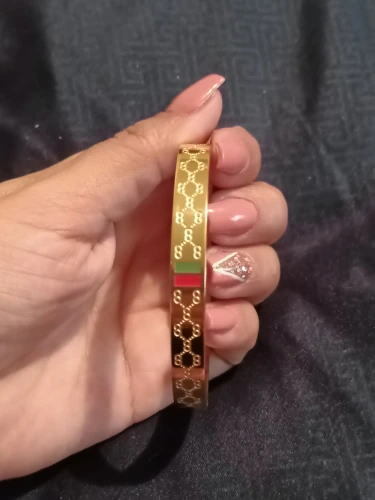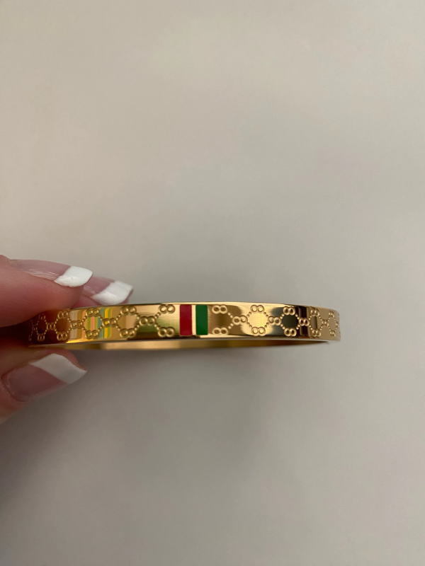腕元簡単アプデ!赤と緑ロゴ ステンレス バングル k18色ゴールド ブレスレット
