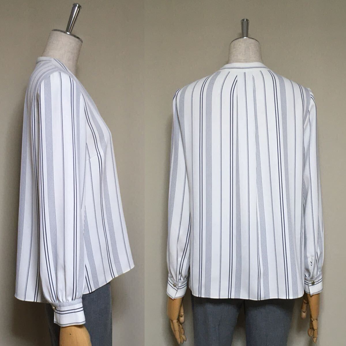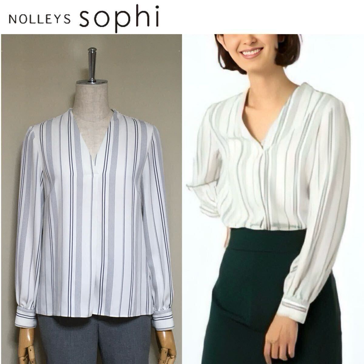 NOLLEY'S sophi◇ノーリーズソフィー 定価1.2万 洗える ストライプ Vネック 長袖ブラウス 38/Mサイズ相当 オフホワイト系 レディース 日本製