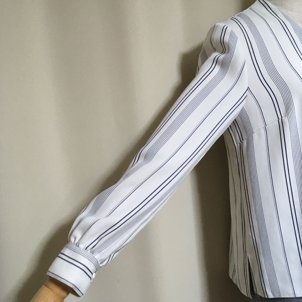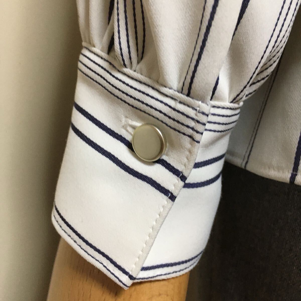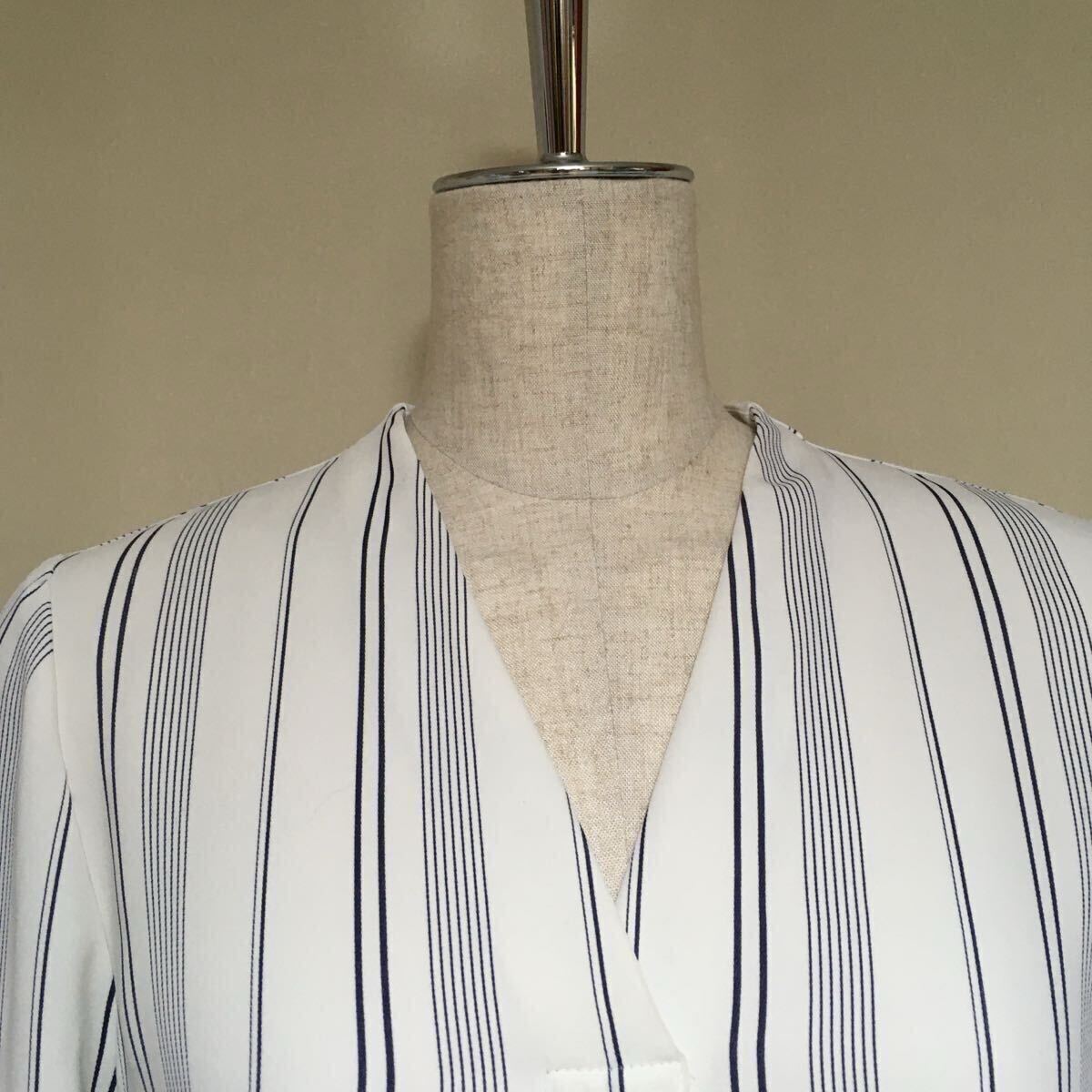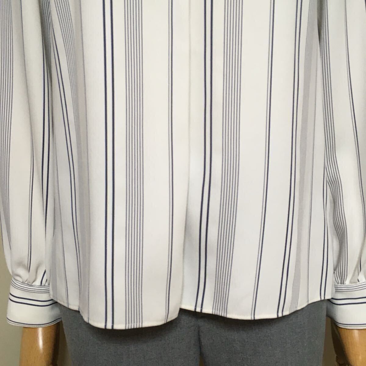 NOLLEY'S sophi◇ノーリーズソフィー 定価1.2万 洗える ストライプ Vネック 長袖ブラウス 38/Mサイズ相当 オフホワイト レディース 日本製