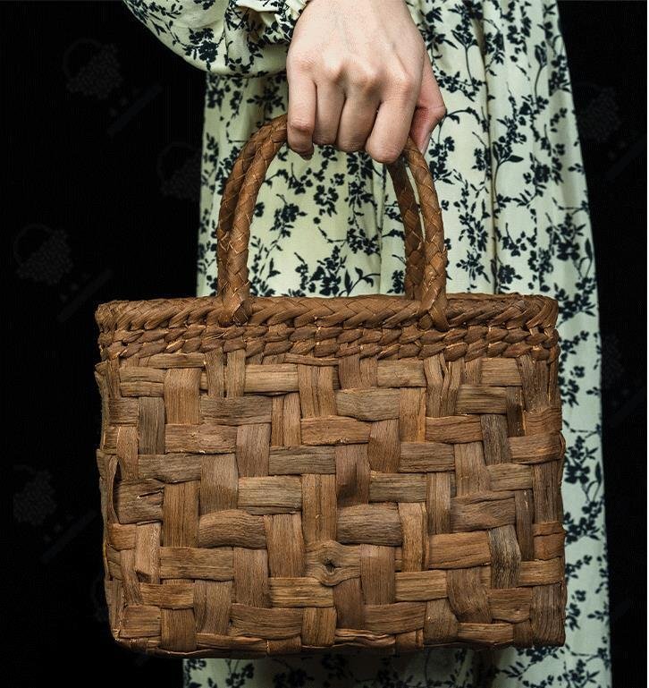 高級感満載! 未使用品  職人手編み 嵐編み 網代編み 山葡萄籠バッグ