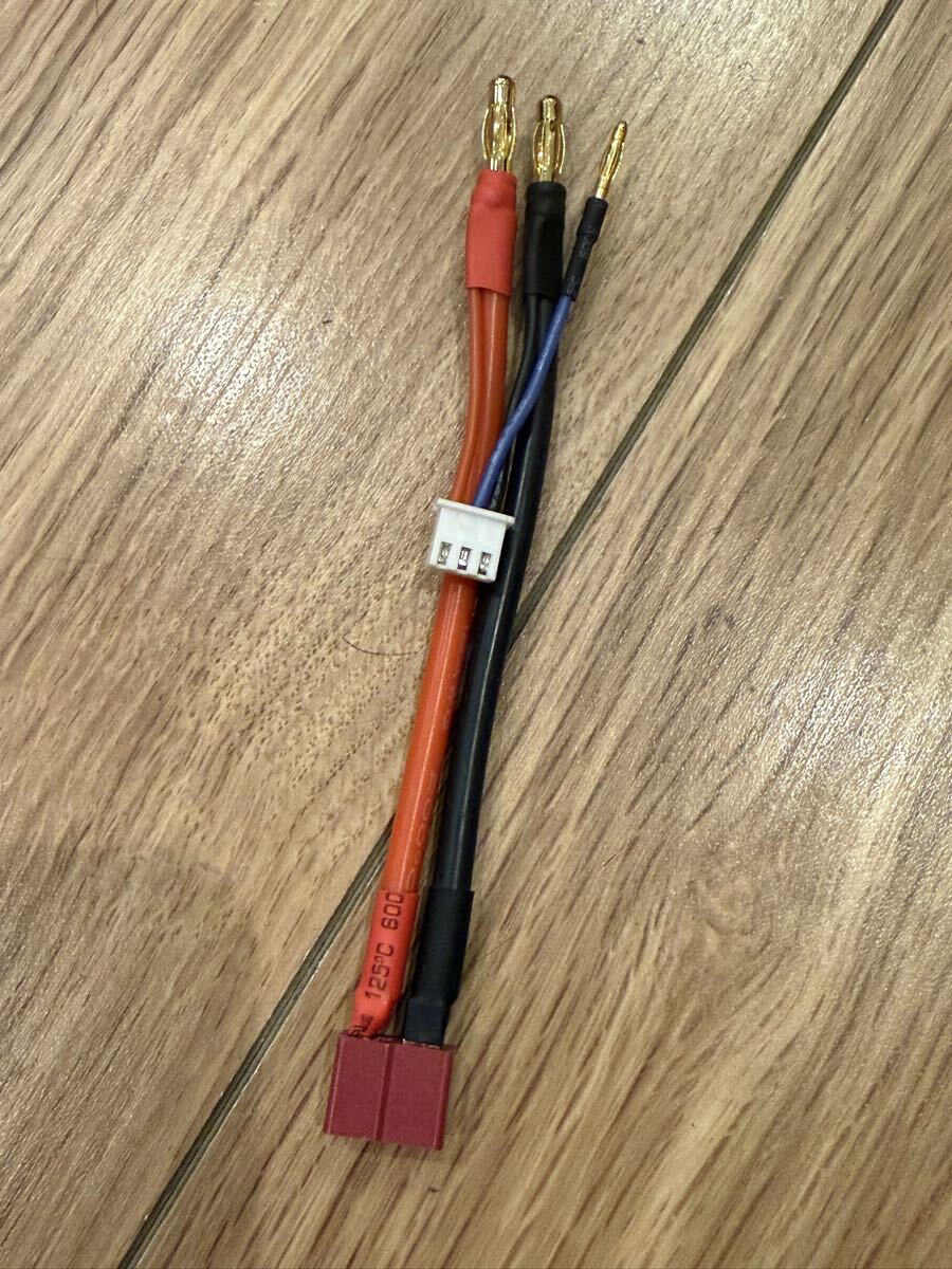 写真にある充電ケーブル(ディーンズ/T型コネクタ・バナナプラグ・バランス端子付き)を1本だけお付けします。本来は複数ありましたが、手元に残っていたのは1本のみとなります。