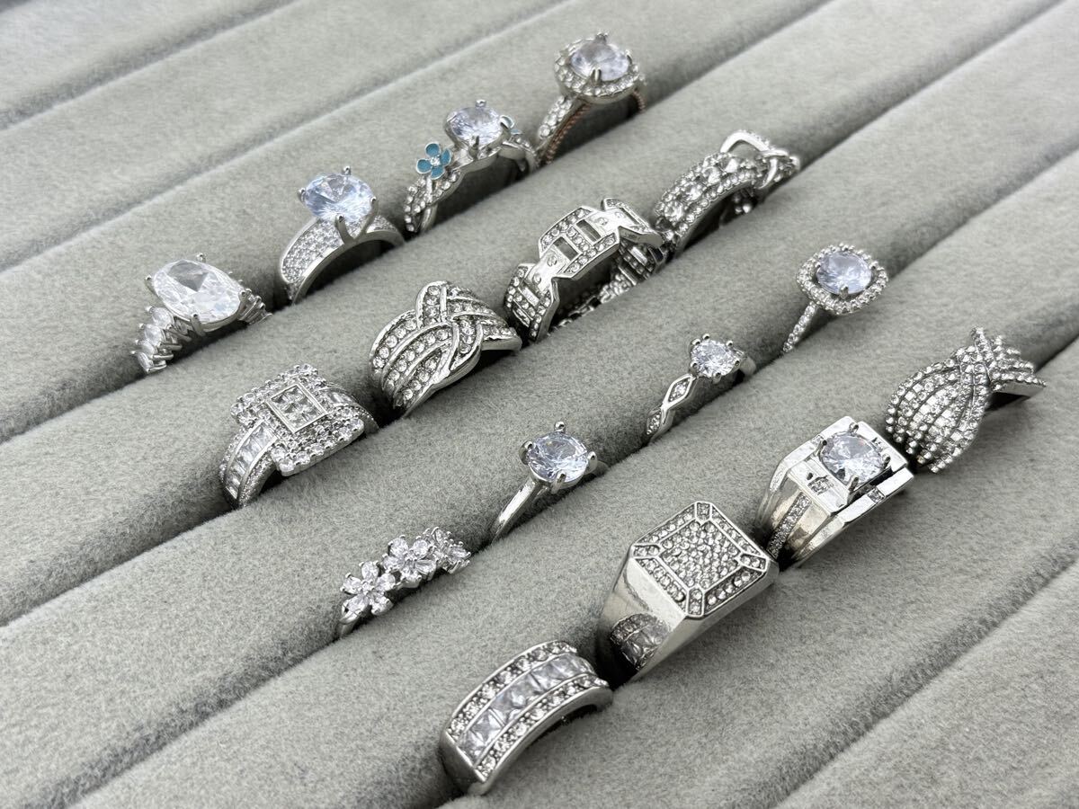 天然石、ジルコニア 、カラーストーン、色ガラス、ゴールド、シルバー、ステンレス、真鍮など様々です。