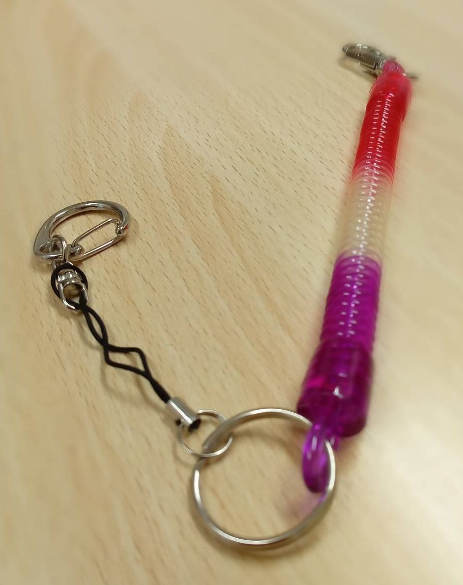 材質 スプリングコイルはプラスチック製で、キーチェーンとフックは金属製です。