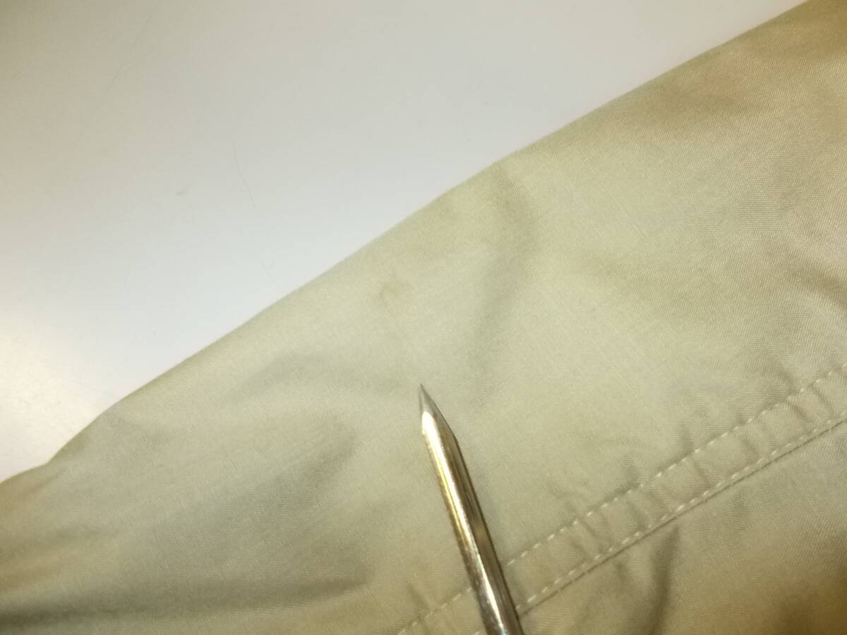 ◆比較的着用感は少なめです。腕に数か所小シミ箇所、裏地若干変色、右裾に2か所、1~2㎜程の小さい切れがあります。その他特に気になるシミやダメージ等はありませんが、used品の為クレーム、返金はご遠慮ください