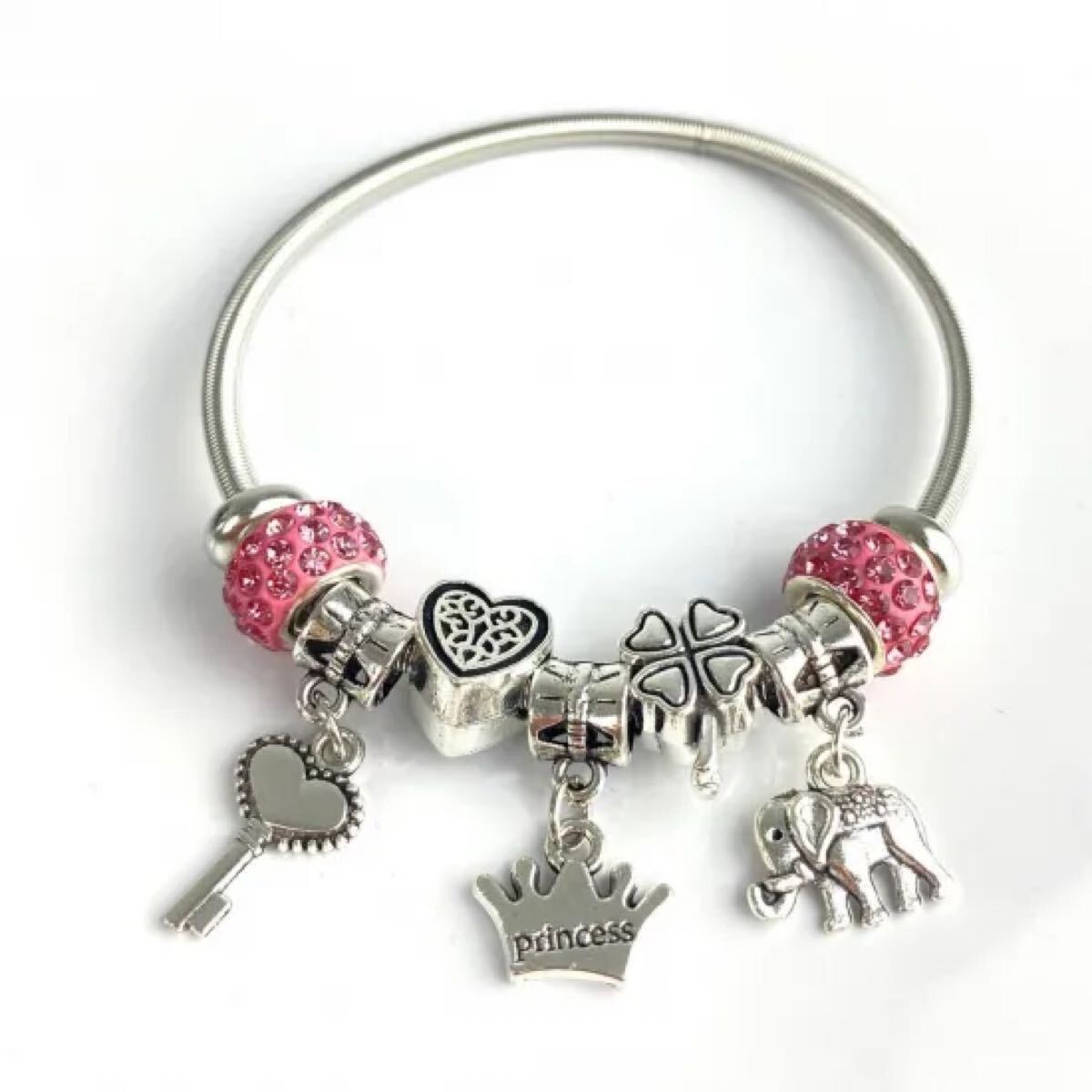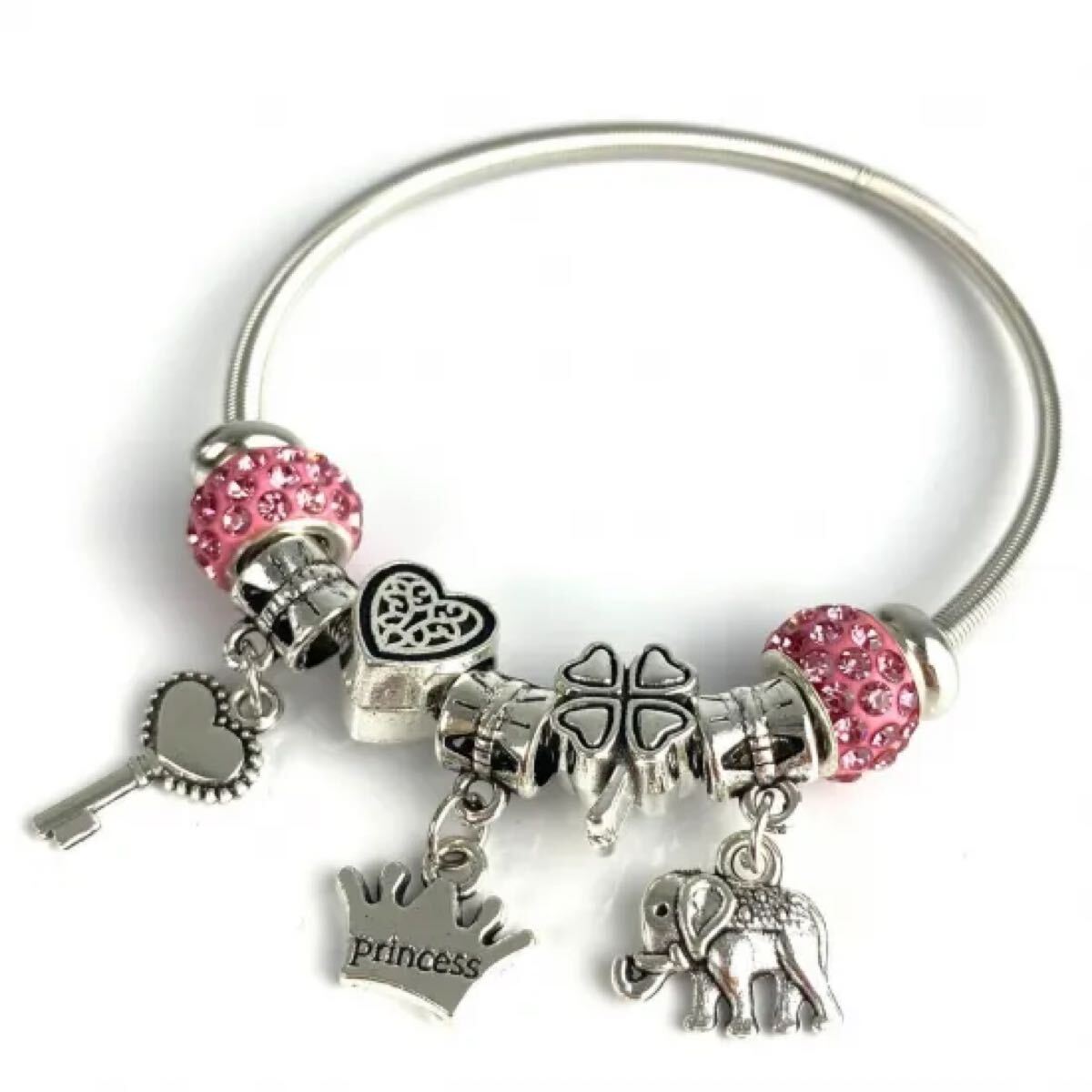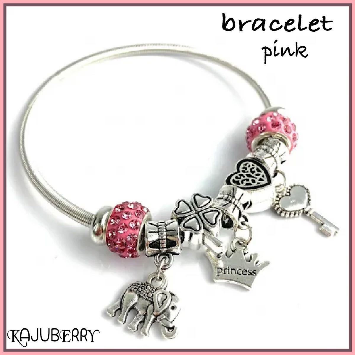 パンドラスタイル チャームブレスレット 王冠 象 フリー 高級感 ピンク アクセサリー チャーム シルバー チャームブレスレット