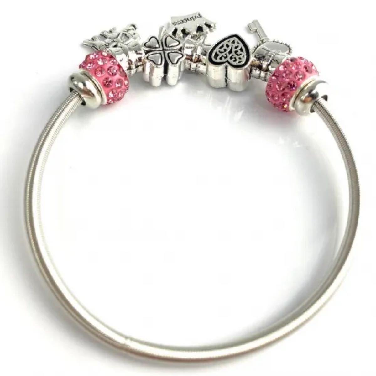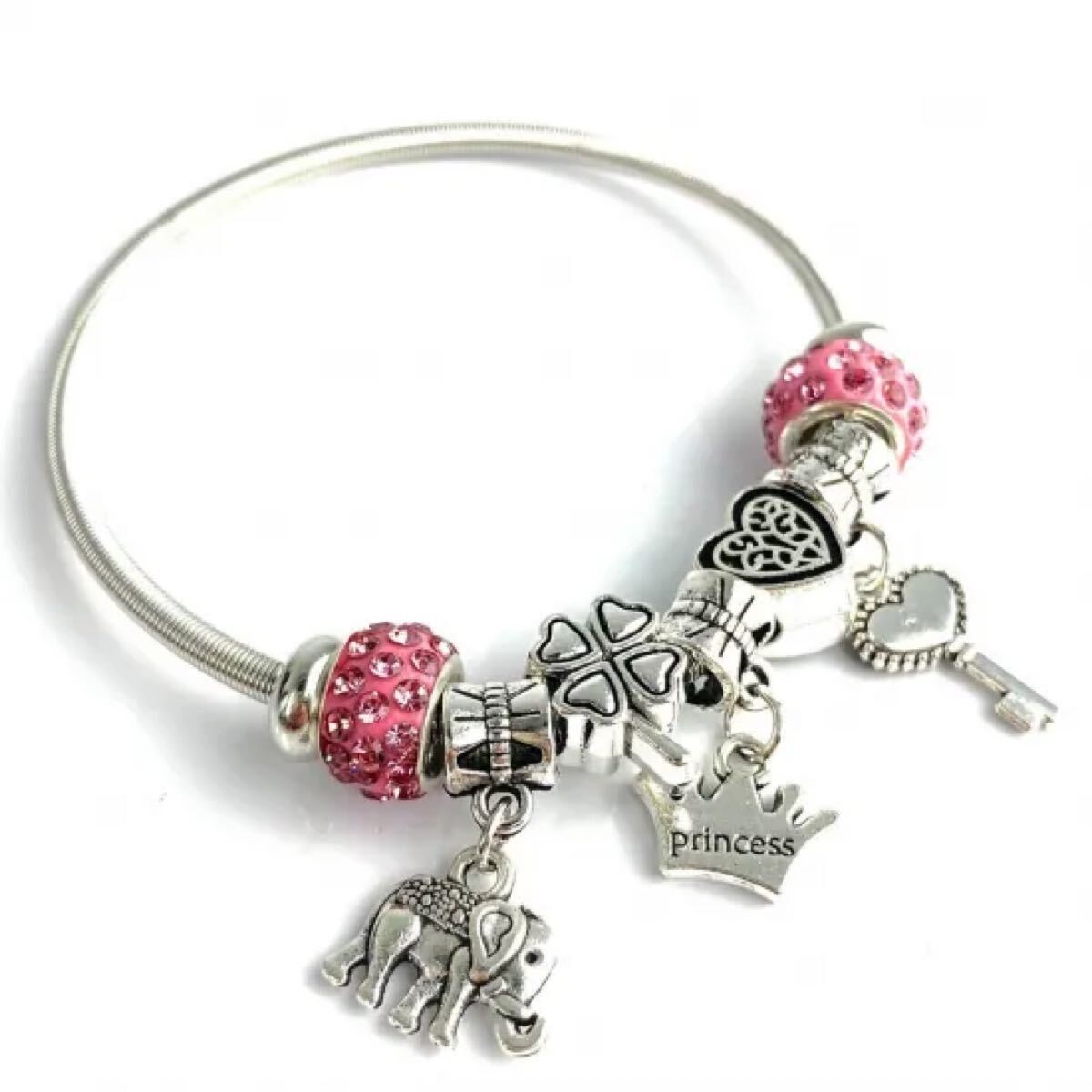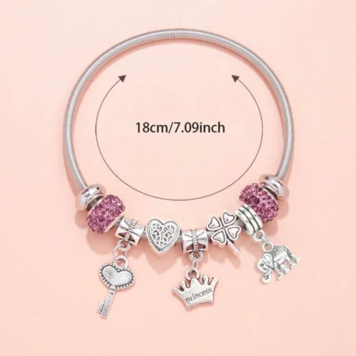 パンドラスタイル チャームブレスレット 王冠 象 フリー 高級感 ピンク アクセサリー チャーム シルバー チャームブレスレット