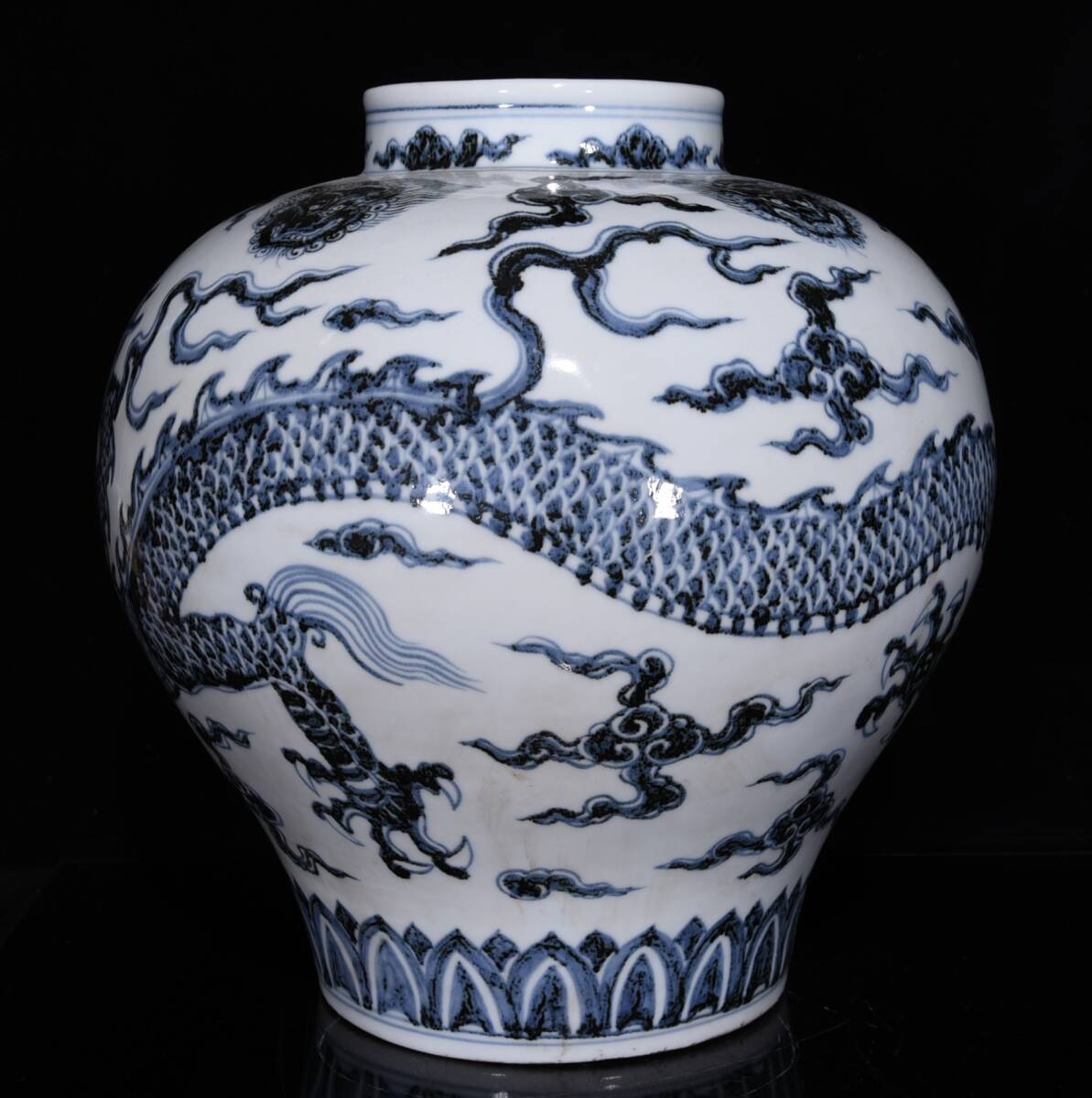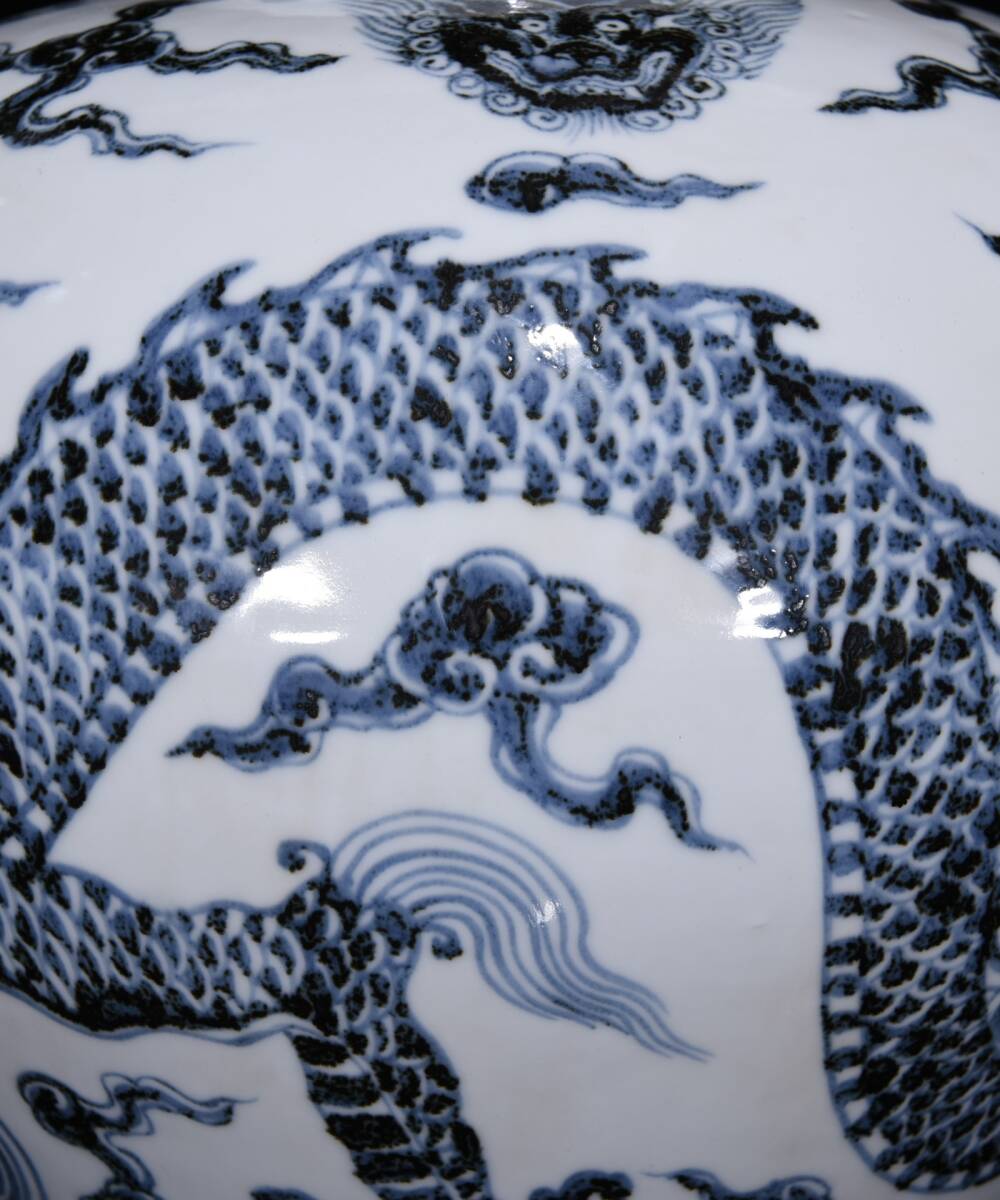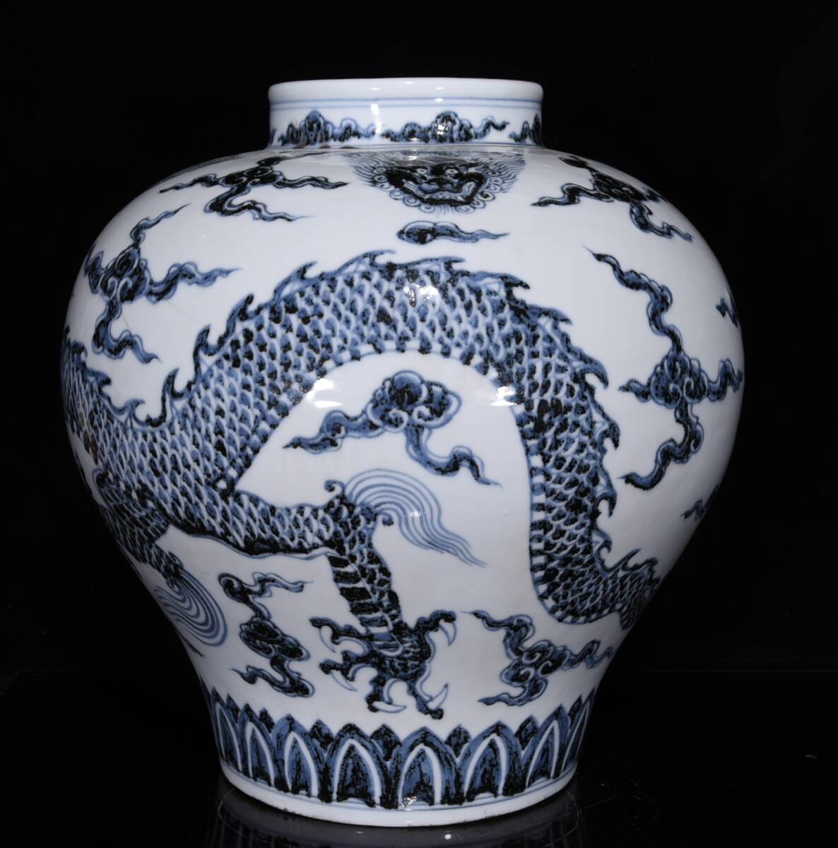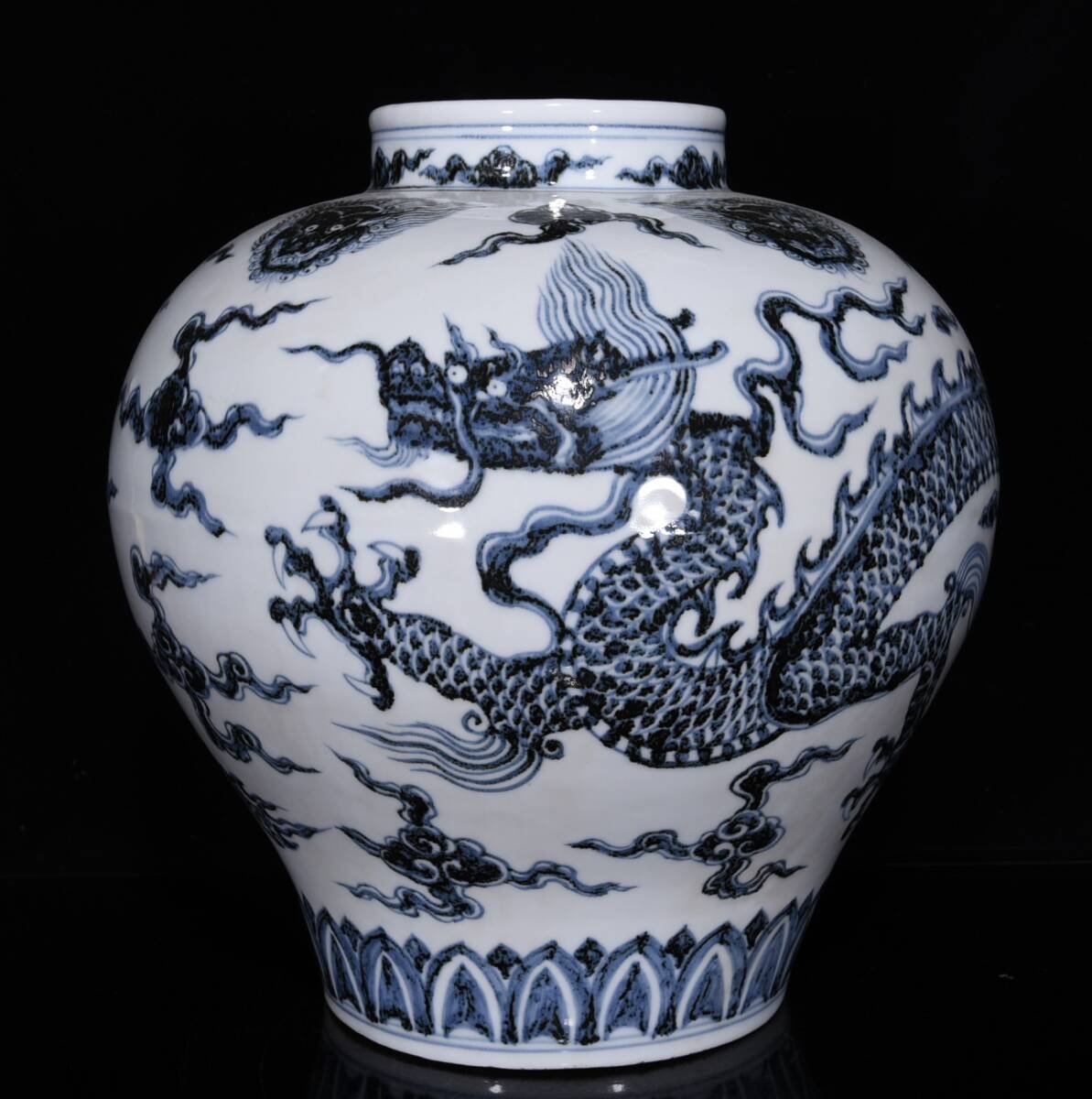 商品名 LM610■明時代『永楽青花染付龍紋大罐』古代工芸品 陶芸 精美彫 置物■高さ34cm直径33cm■