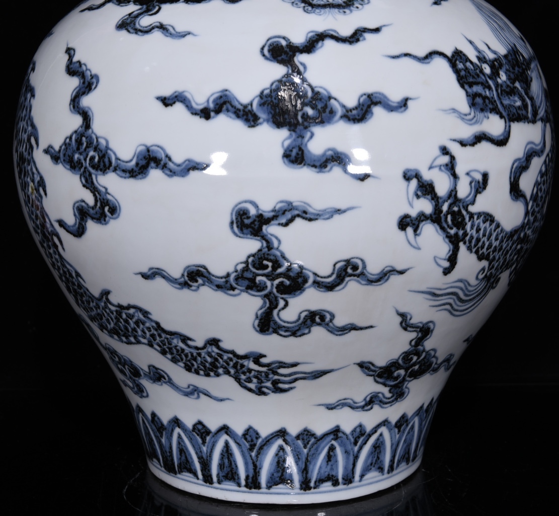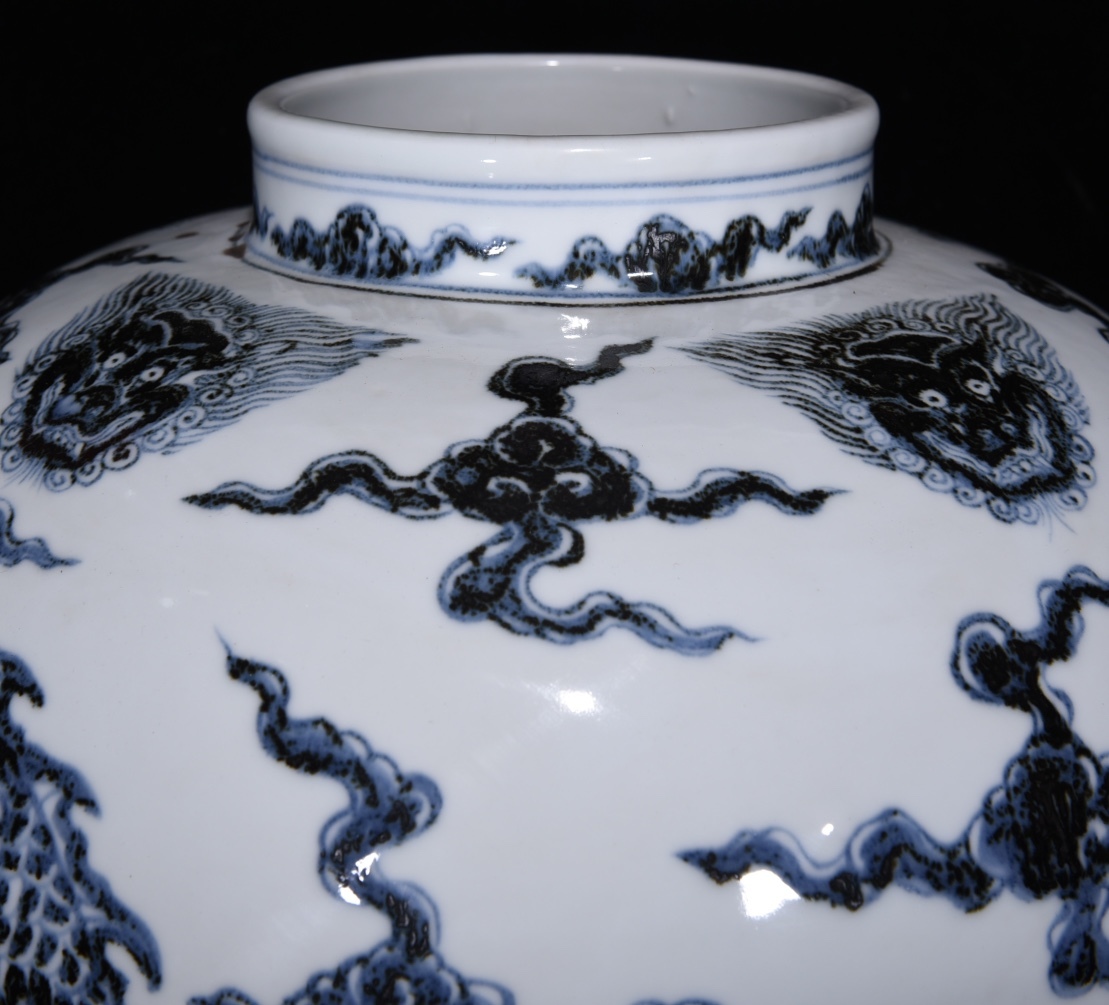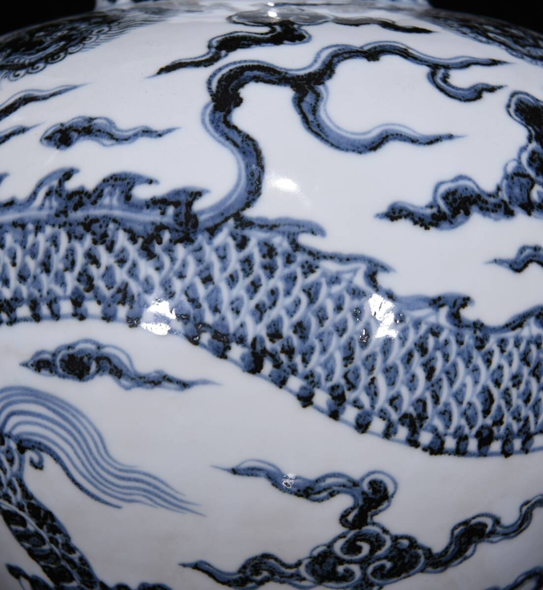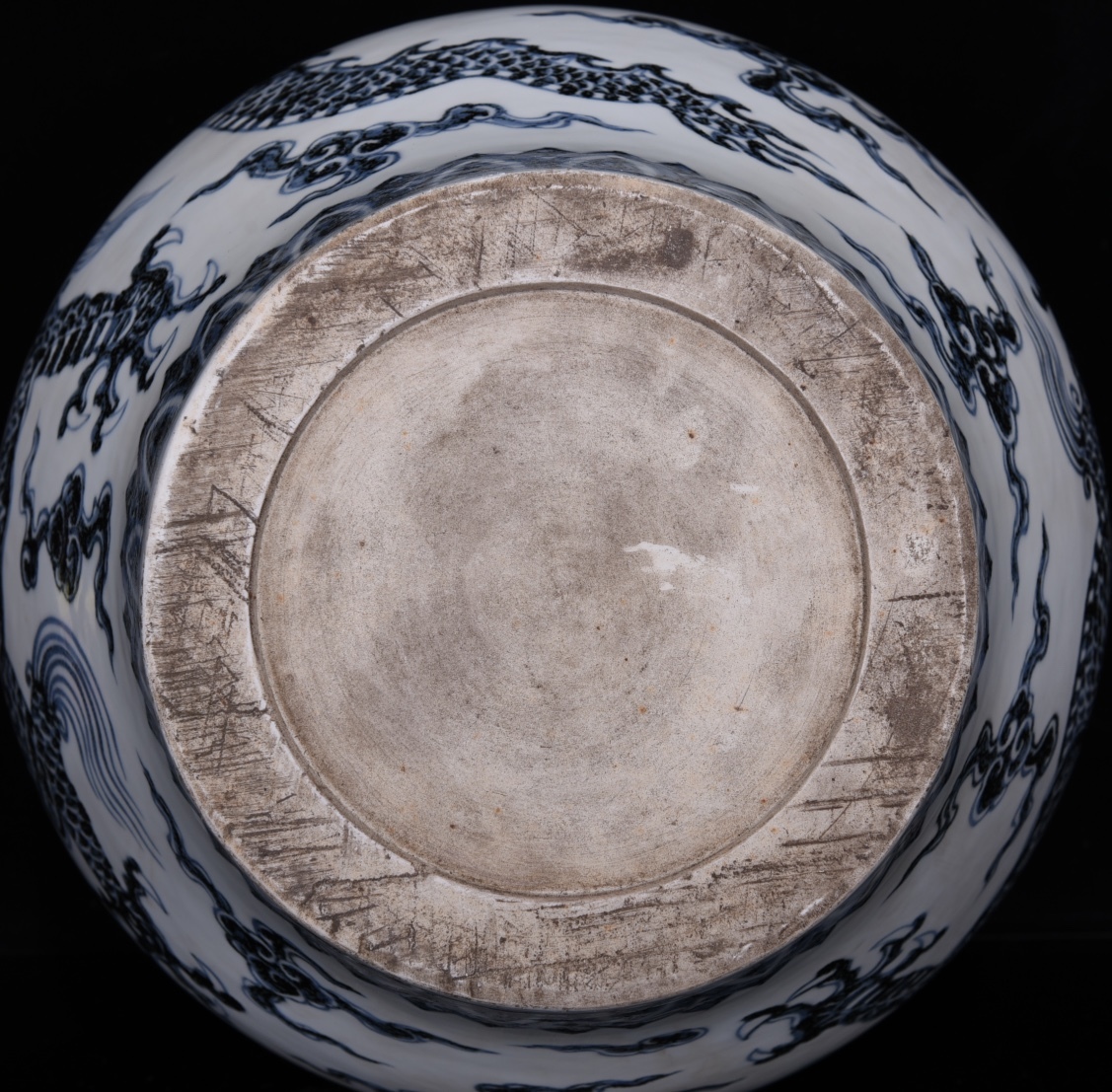 商品名 LM610■明時代『永楽青花染付龍紋大罐』古代工芸品 陶芸 精美彫 置物■高さ34cm直径33cm■