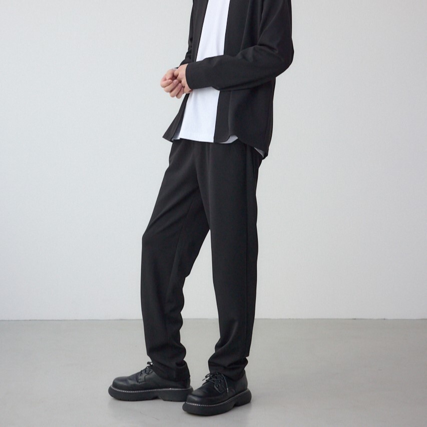 ■落ち感のあるリラックスパンツ。 ■ウエストにドローコードが付いておりサイズ調整可能です。 ■表面感のある生地で、ストレッチが6%入っているので、着心地がよいです。 |