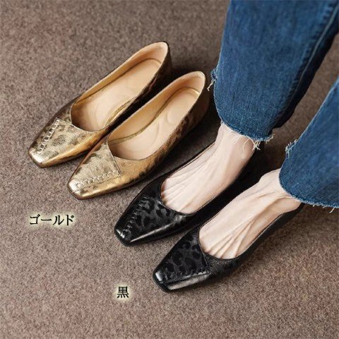 ・薄めのシャープなスクエアトゥのきれいなパンプス。