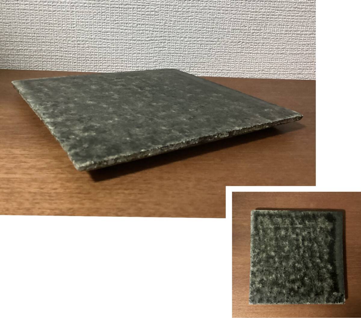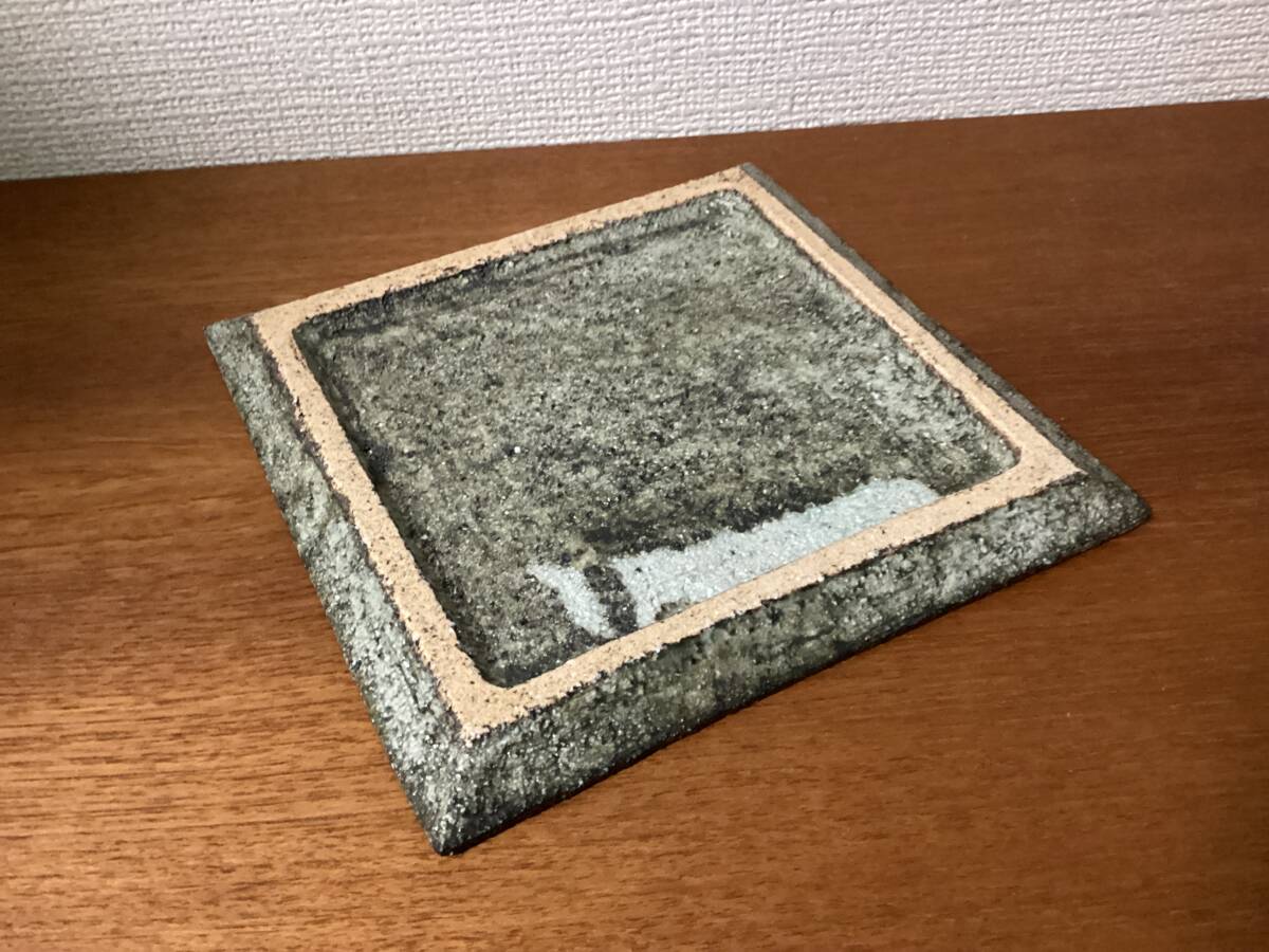 希少★新品未使用★作家★器★清岡幸道さん★信楽焼★釉薬★オリーブ★正角皿★お皿★プレート★16センチ角★一点もの★正方形★取り皿
