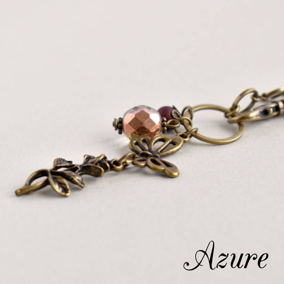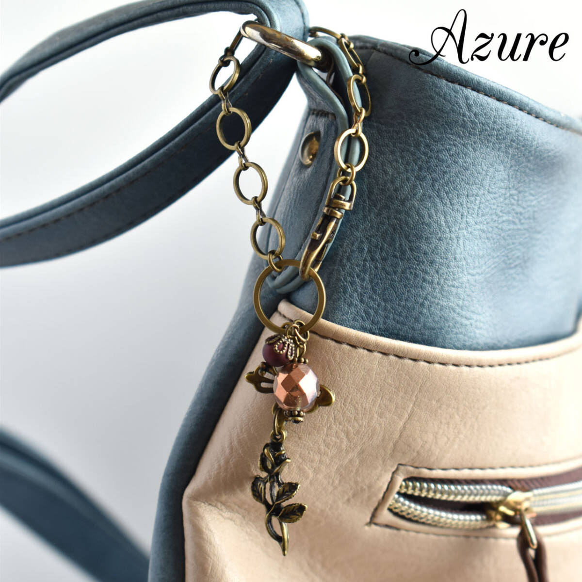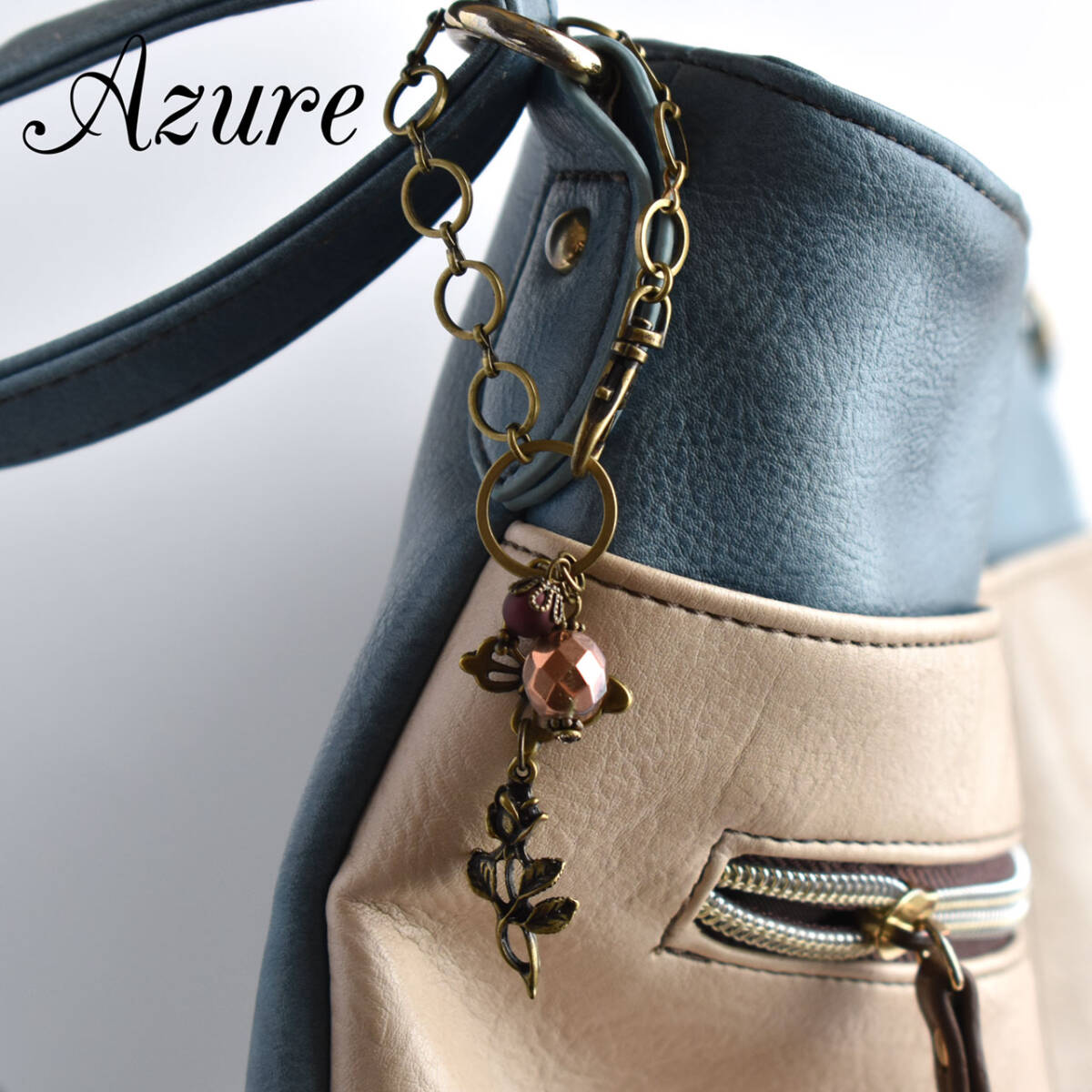 立体的なつくりの薔薇チャーム使用したバッグチャームです。ワインレッドのケシパール、大粒のFPビーズを合わせました。 ■メイン素材 金属、プラスチックパール、ガラスビーズ ■サイズ 薔薇:約27*13mm(カン部分含む) バッグチャーム:チェーン部分:長さ約120mm フック:約23×9mm ★ ツイッター(@Azure_Annsparts) ★ リットリンク:https://lit.link/azureazure