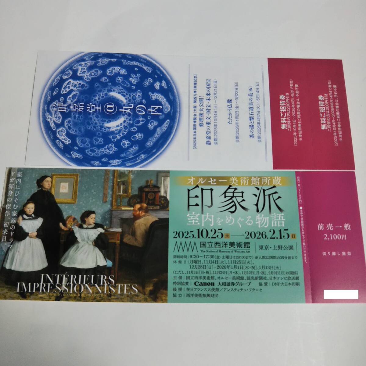 オルセー美術館所蔵 印象派 室内をめぐる物語 国立西洋美術館+静嘉堂の重文・国宝・未来の国宝 静嘉堂文庫美術館 入場券2枚セット