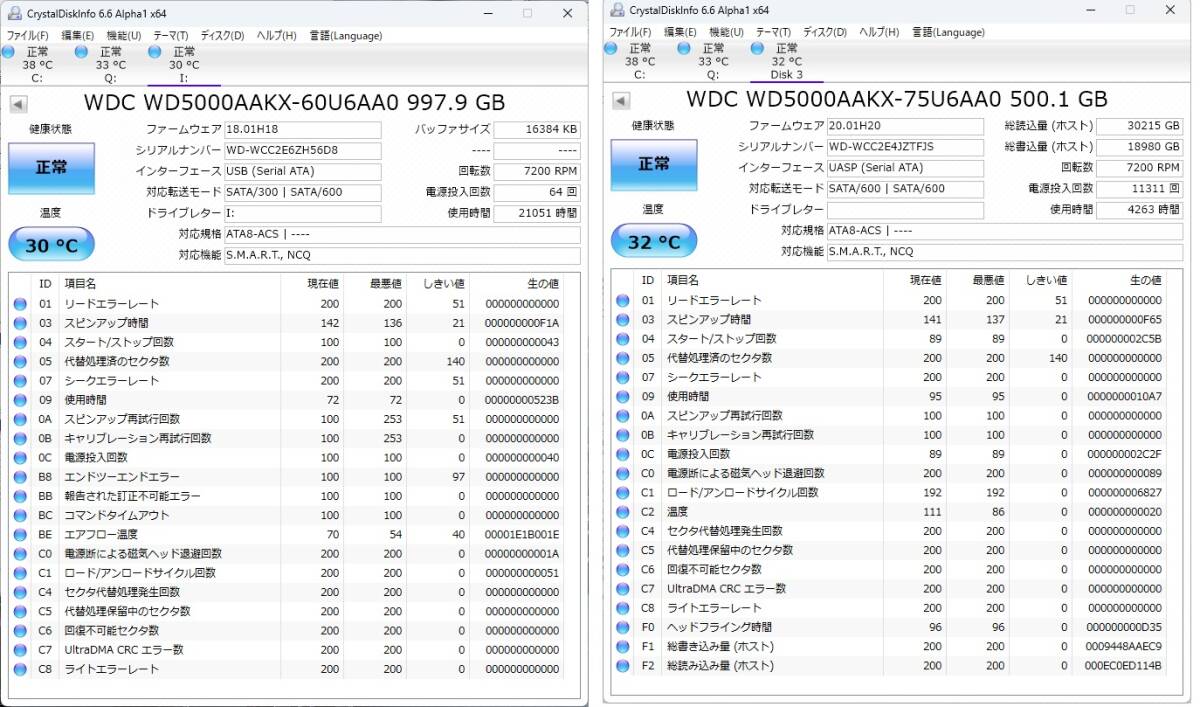 HDDの状態はCrystalDiskinfoで正常を確認してあります