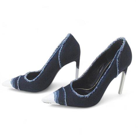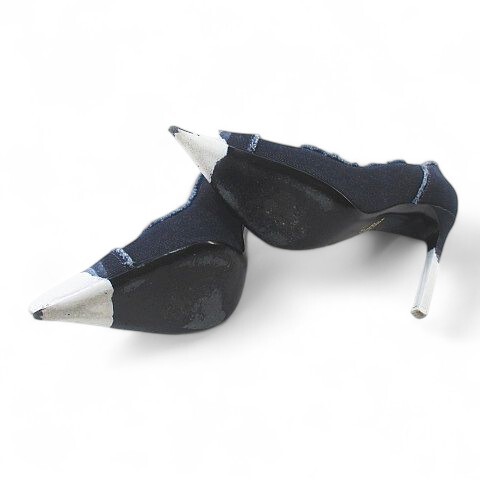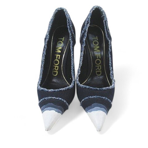トムフォード TOM FORD ディップ・ダイ・デニム・パンプス - ダークブルー 37 デニム レザー イタリア製 レディース