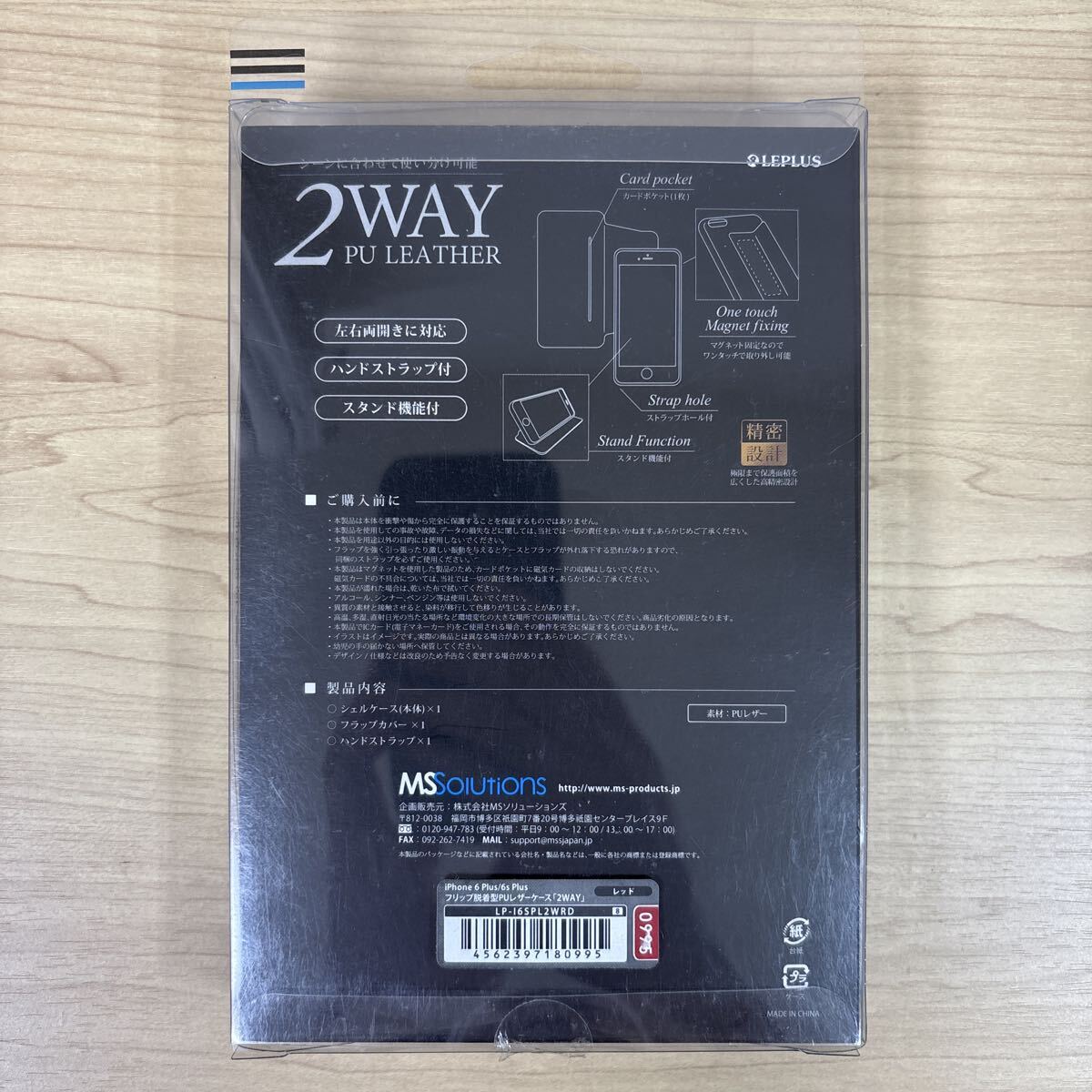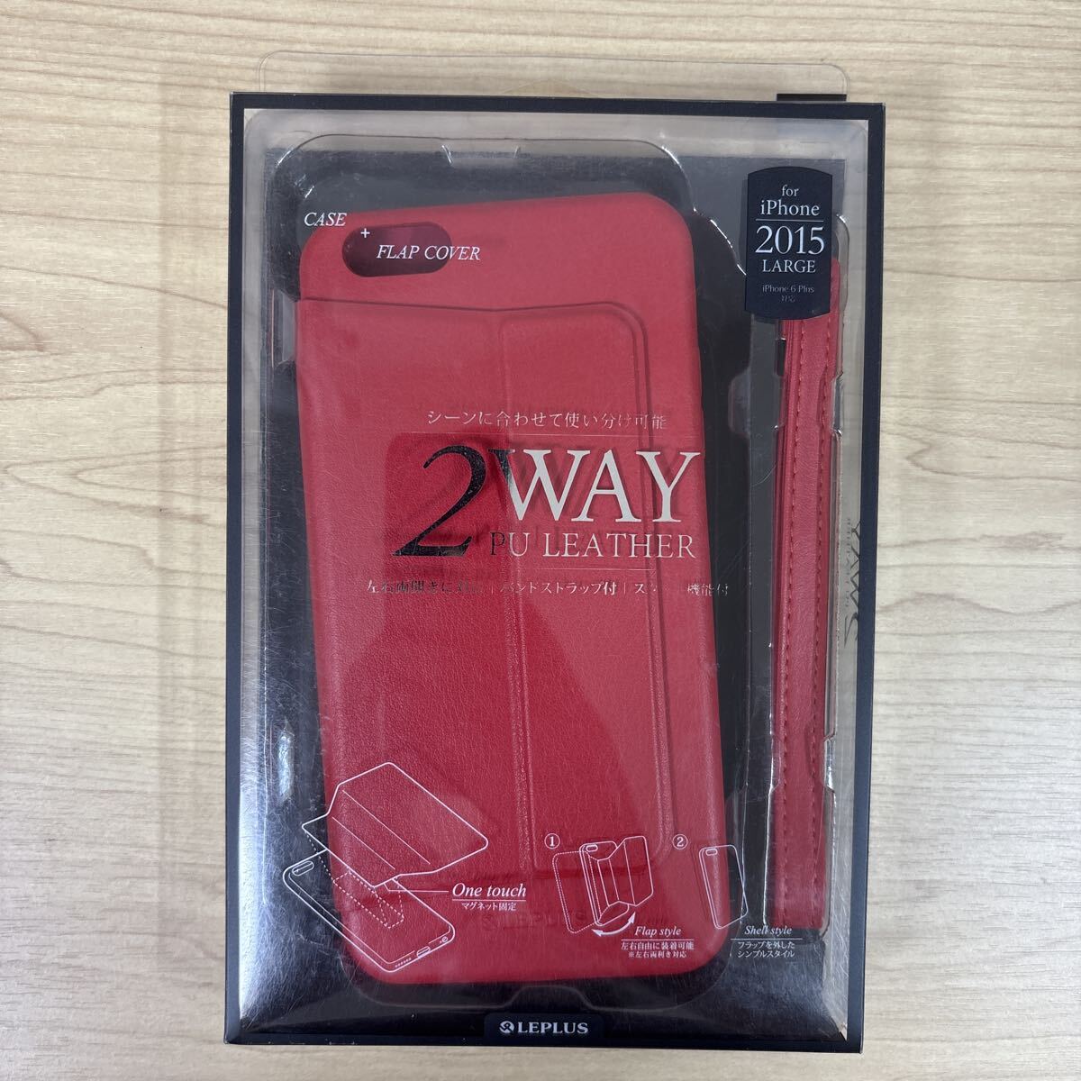 iPhone 6s Plus 2WAYレザーケース レッド 左右両開き ハンドストラップ付 スタンド機能付き