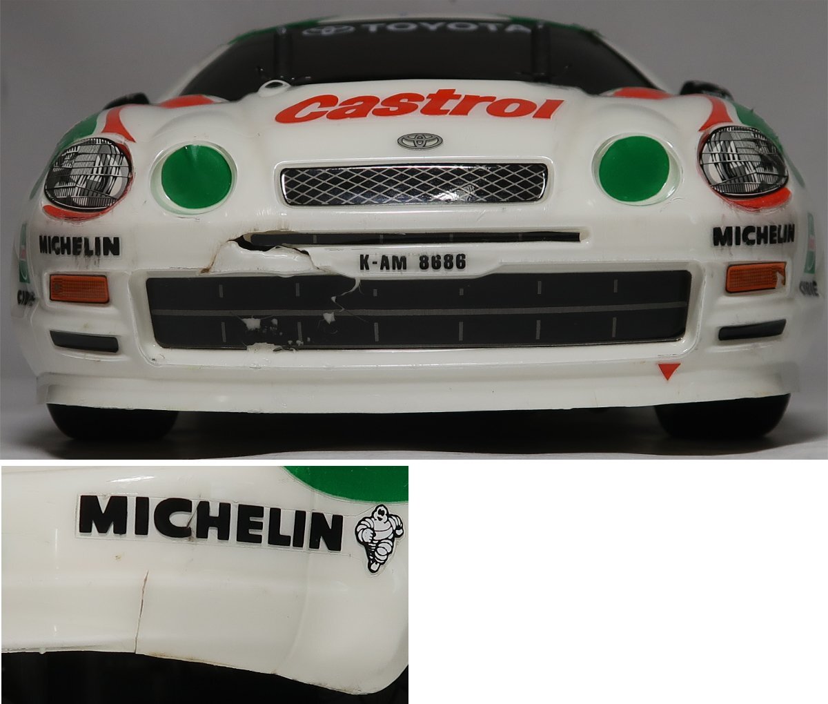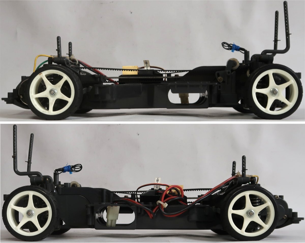 出品は画像の物が全てです。他に必要なものはご自分でご用意ください。最低限プロポの電池、バッテリーと充電器が必要です。ラジコンカーは使用品ですし古い物ですので汚れや所々に傷はあります。ボディは擦り傷や汚れがあります。また部分的に割れている箇所もあります。バッテリーホルダーとピンがないです。私が見る限りは特にひどいダメージは確認出来ませんでした。オリジナルのタイヤは劣化していたので、画像のタイヤに交換しております。この状態でテストをしましたが操作はできましたし、問題なく動作はしました。分かる事は以上です。お取引後は一切のサポートはしておりませんので問題があればご自分でご対処ください。お取引後は一切のサポートはしておりません。お取り引き後に説明以外の不足品や説明以外の破損や故障が有ったとしても返品は出来ませんしクレームもお受けできません。問題があれば全てご自分でご対処ください。