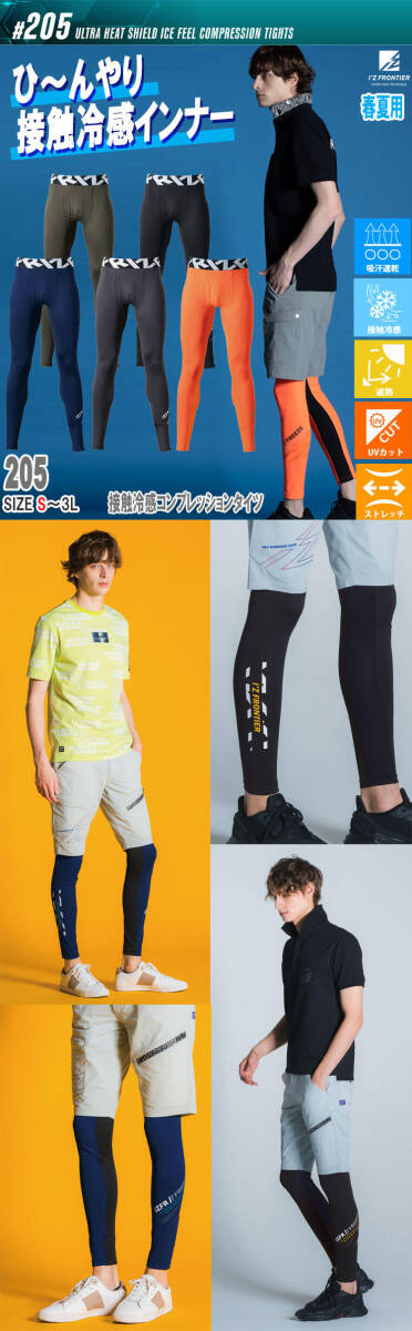 春夏 アイズフロンティア 超遮熱 接触冷感コンプレッションタイツ 205 Mサイズ 52アプリコットオレンジ