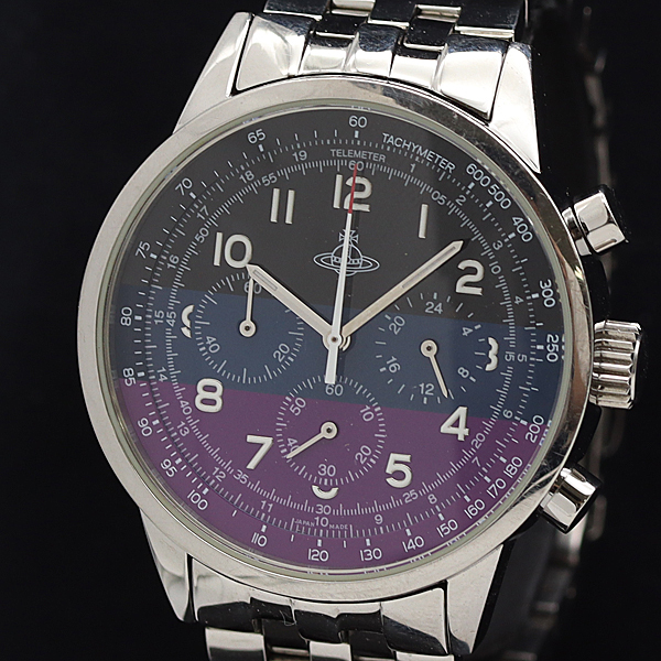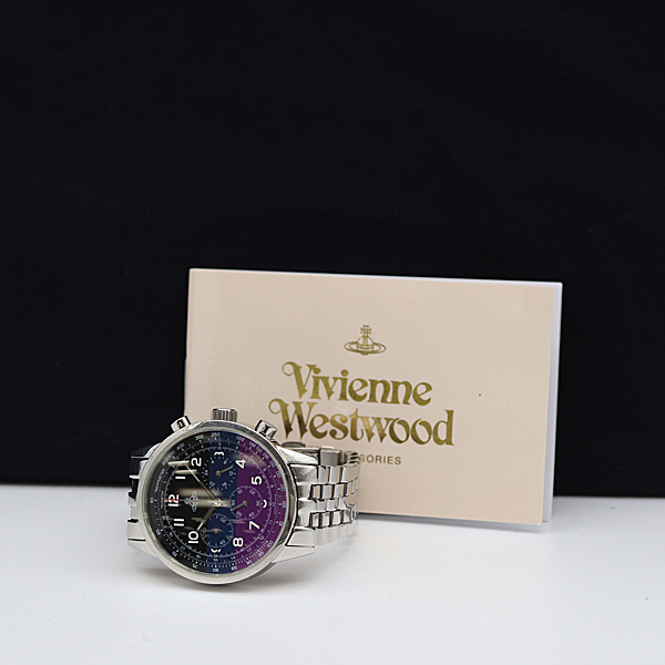 1円 保 稼働 ヴィヴィアンウエストウッド クロノグラフ VW-7073 QZ ブラック文字盤 メンズ腕時計 0429000 9BGT SMZ