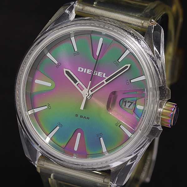 1円 稼働 良品 ディーゼル エムエスナイン DZ-1926 QZ レインボー文字盤 メンズ腕時計 3835000 9BJY MST