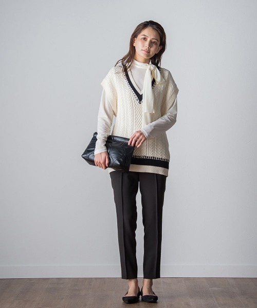 参考商品名:ハンドステッチ配色ケーブルニットベスト