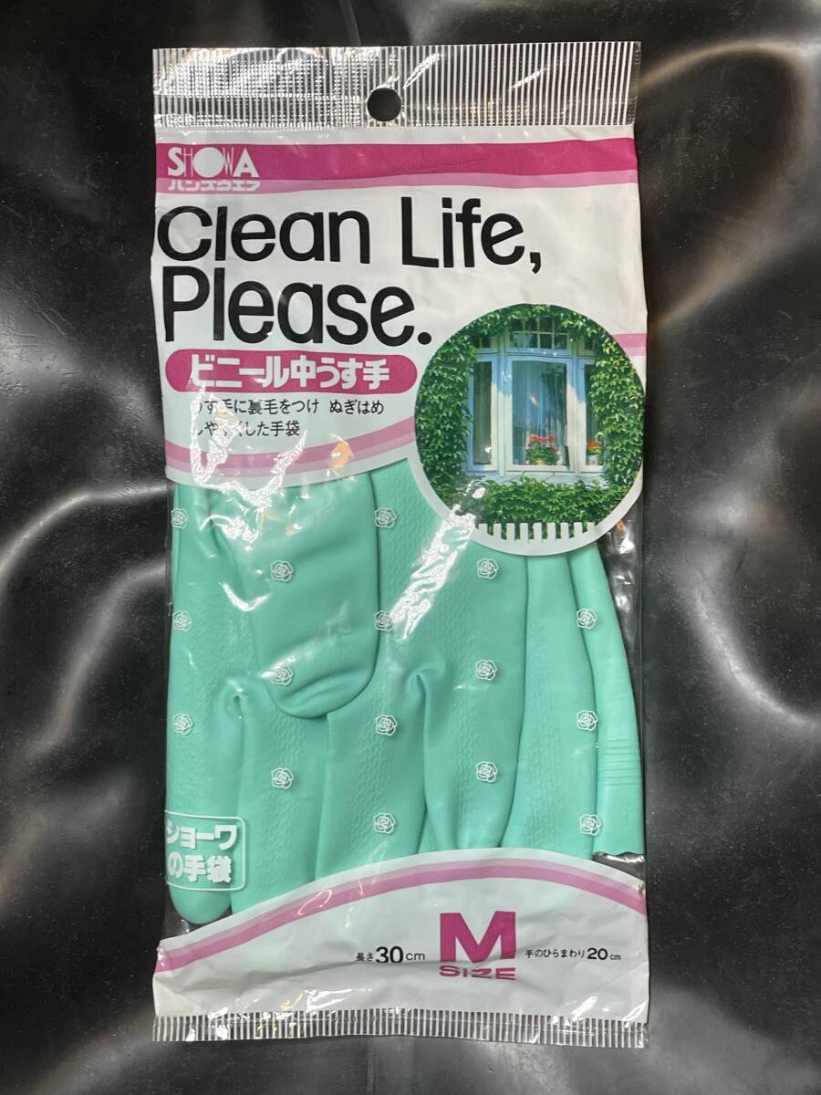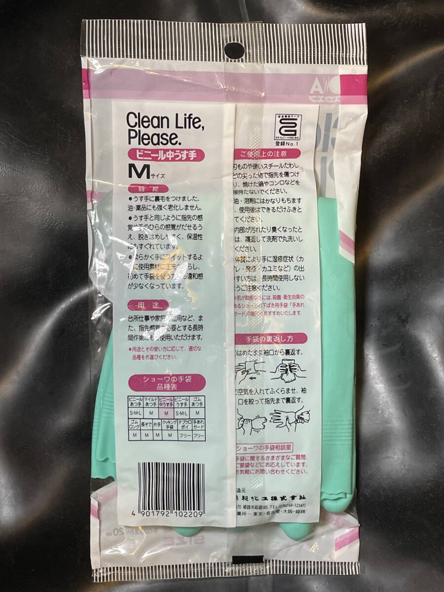 昭和レトロ 入手困難  希少 SHOWA 炊事用ビニール手袋 ビニール中うす手・うら毛あり 日本製 日用品 雑貨 アンティーク 新品 ビンテージ
