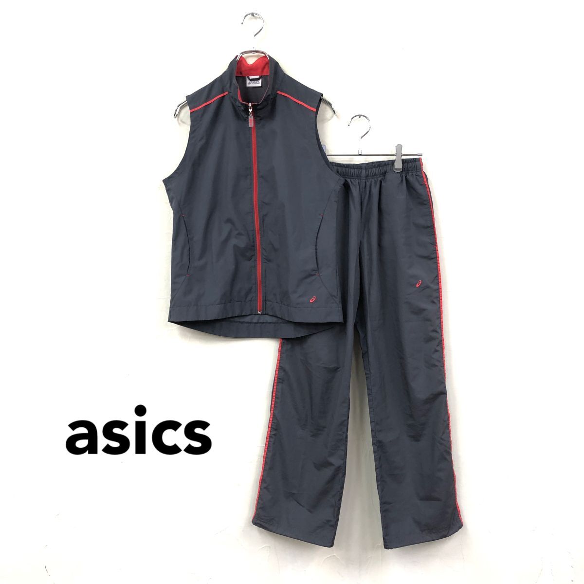 2O1299-Y-N◆asics アシックス ノースリーブトレーニングウェア上下セット フルジップ ストレートパンツ レディース ◆sizeM グレー ポリ