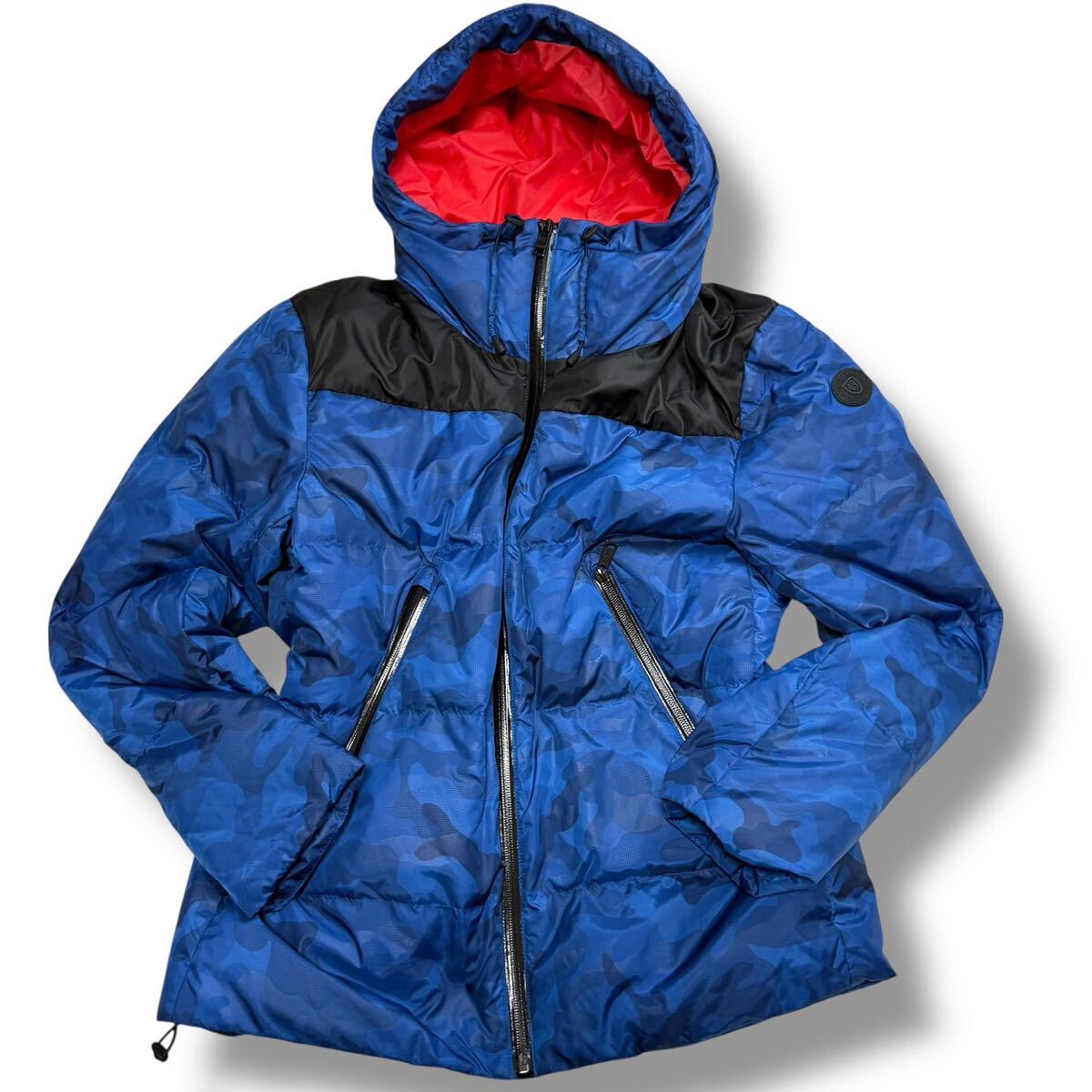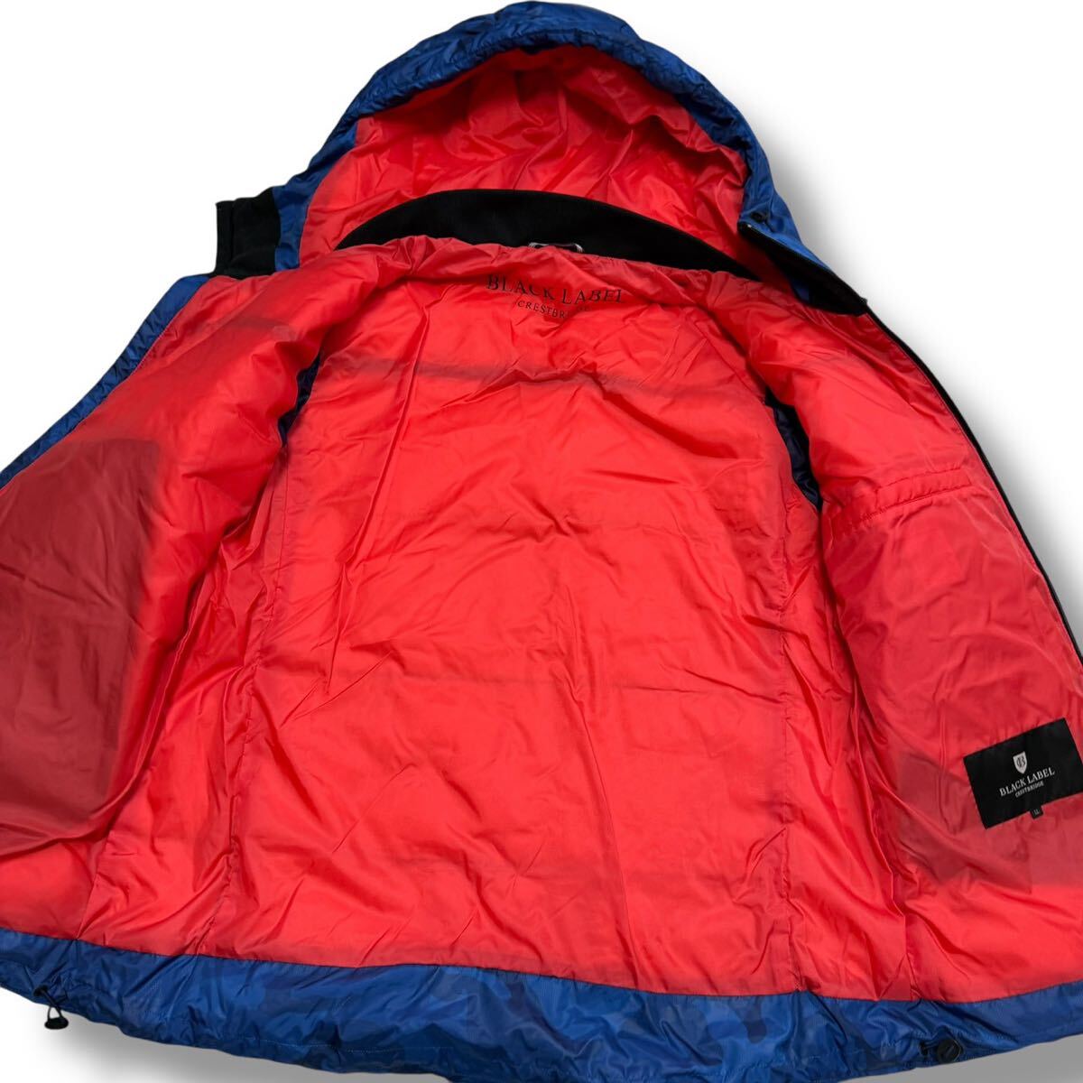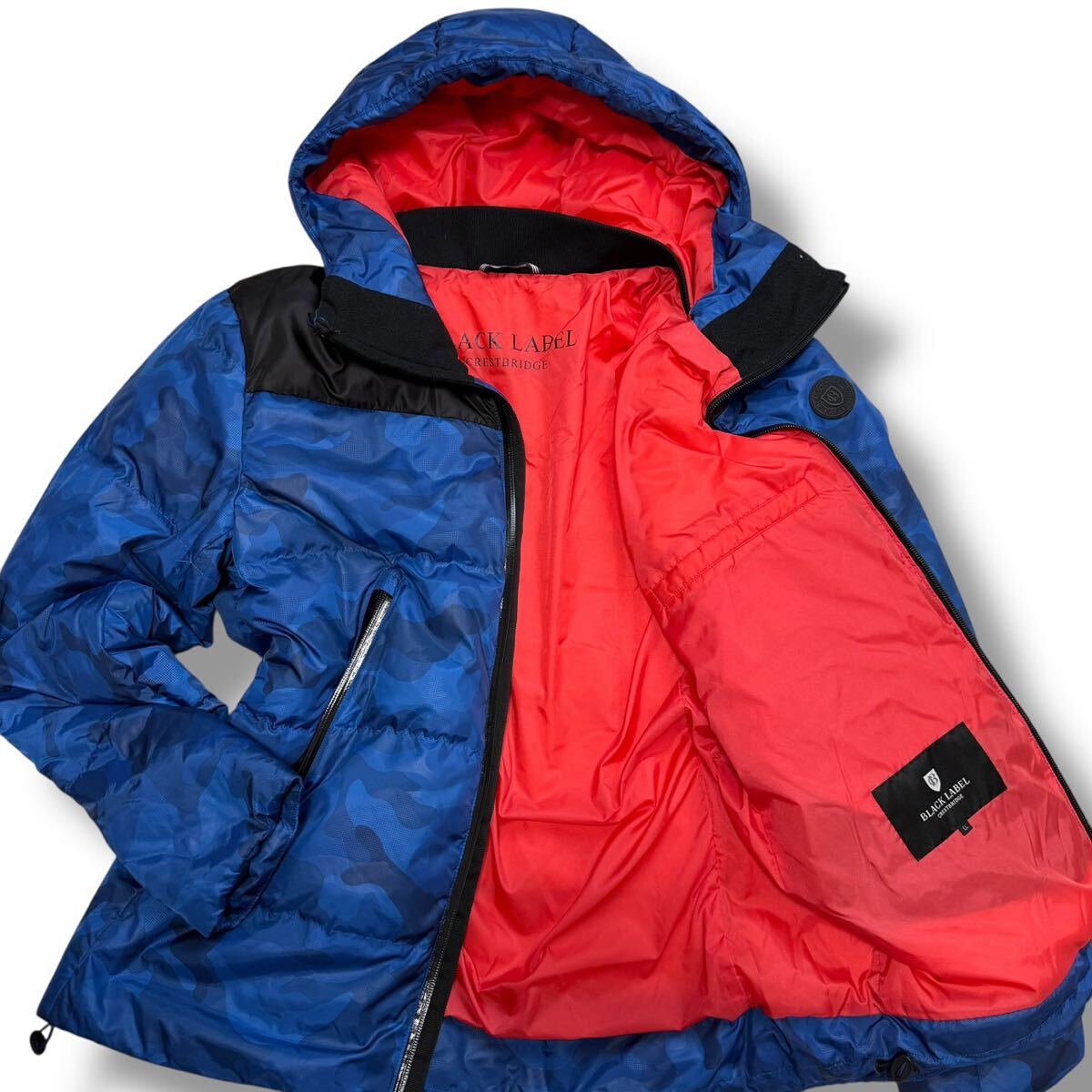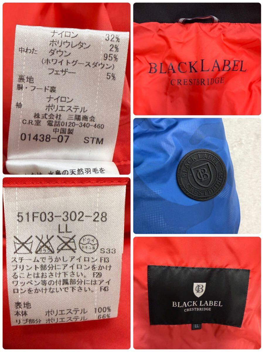 稀少LL 極美品 ブラックレーベルクレストブリッジ ロゴワッペン ダウンジャケット 迷彩 カモフラ ブルー 青 BLACK LABEL CRESTBRIDGE