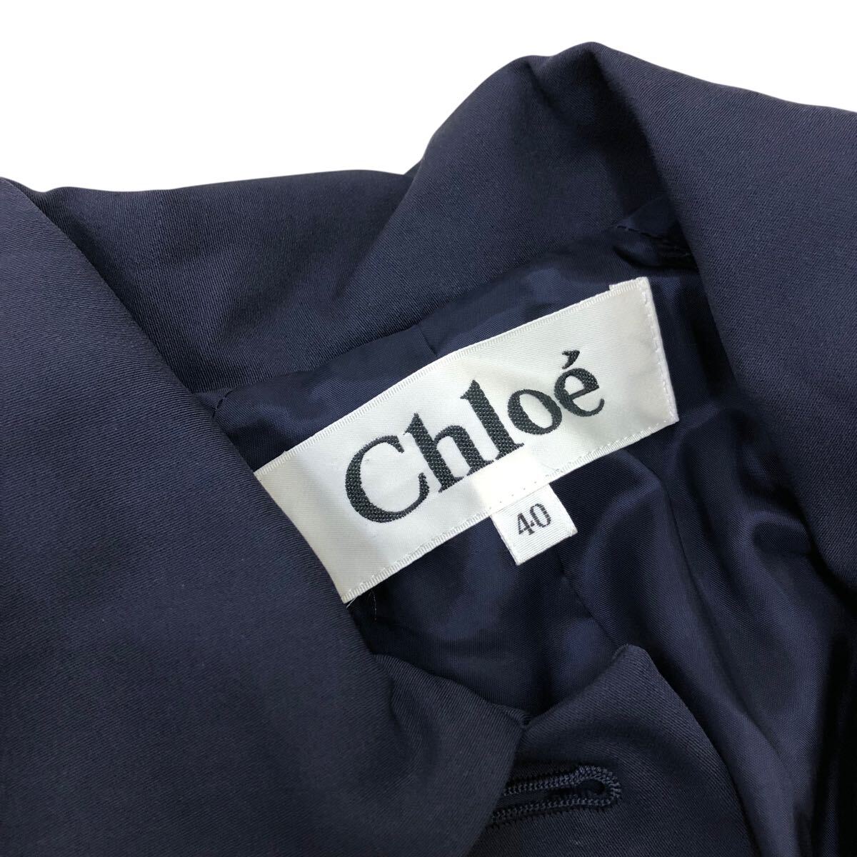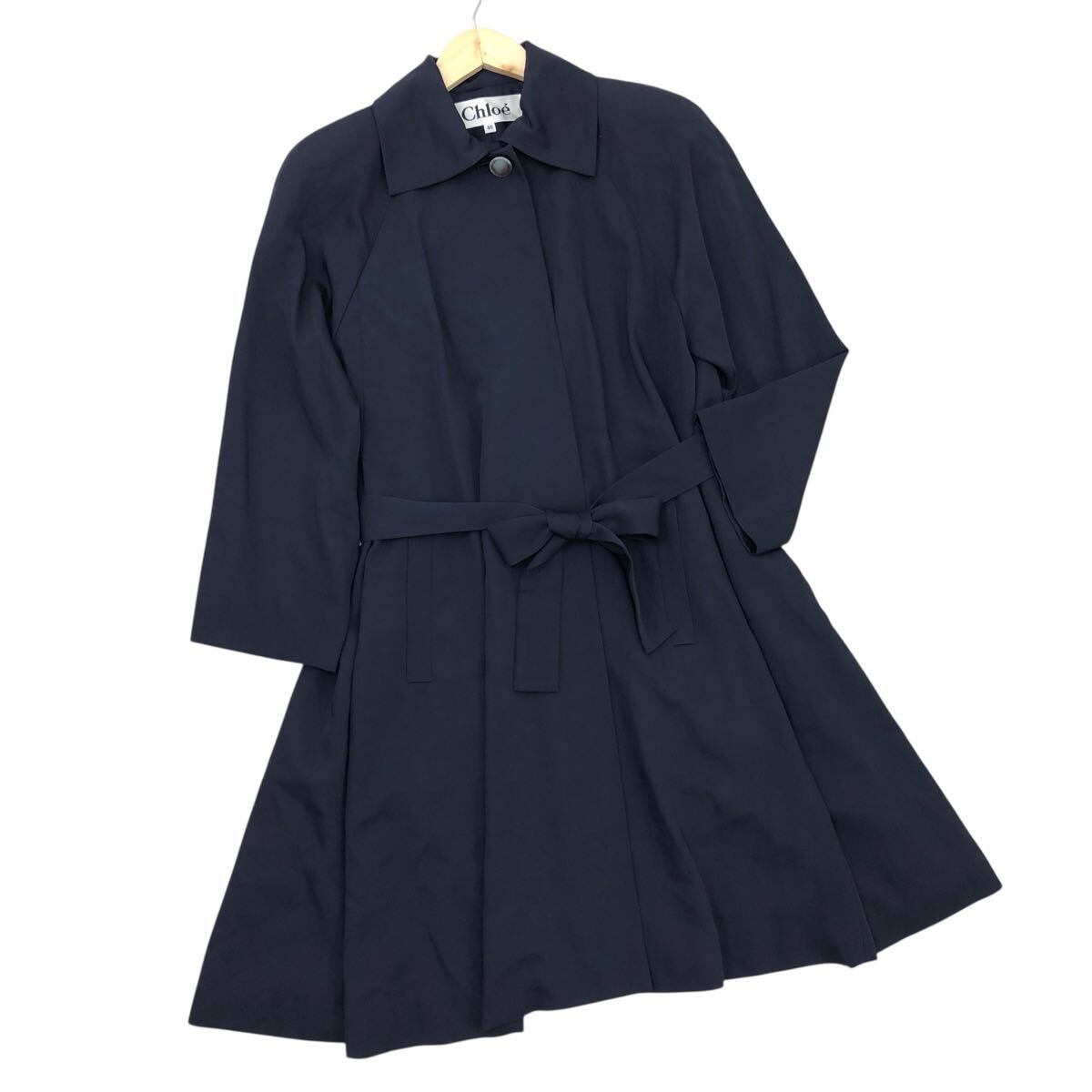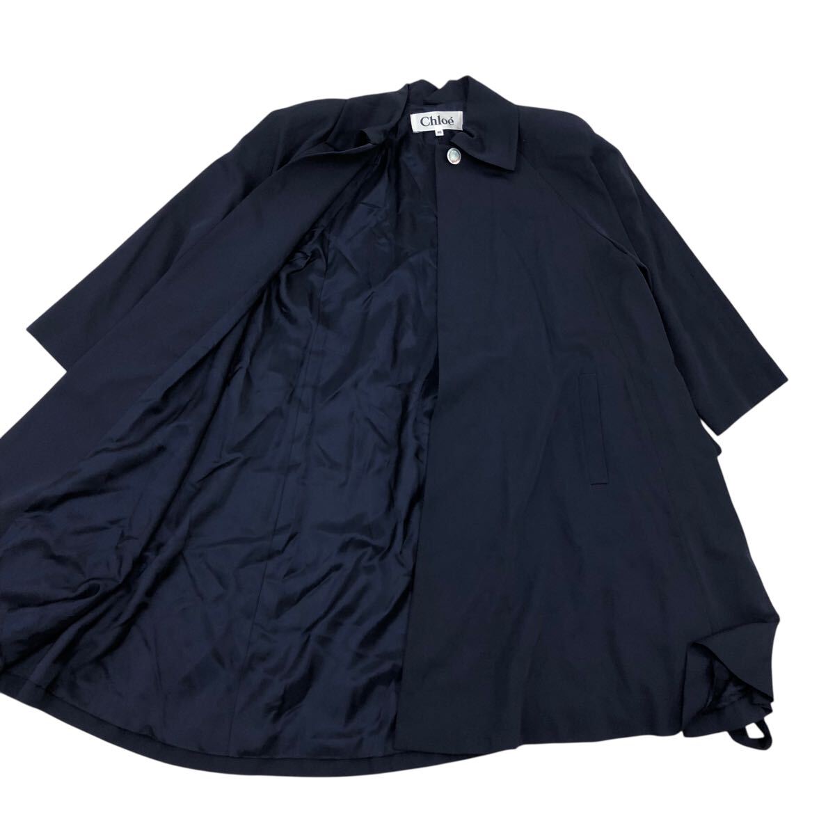 10m660-40 良品 Chlo クロエ ステンカラーコート Aライン コート ラグラン 上着 羽織り アウター ネイビー 紺 レディース 40