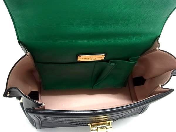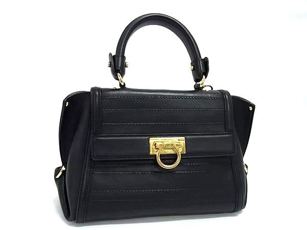 1円 ■美品■ Salvatore Ferragamo フェラガモ ガンチーニ レザー ワンハンドル ハンドバッグ レディース ブラック系 FR4781