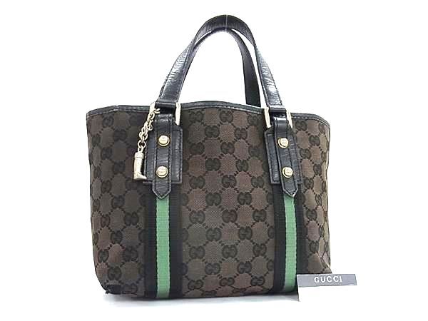 1円 GUCCI グッチ 139261 GG柄 GGキャンバス×レザー ハンドバッグ トートバッグ レディース メンズ ブラック系×ブラウン系 DB2958