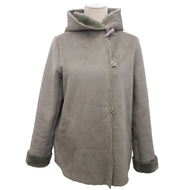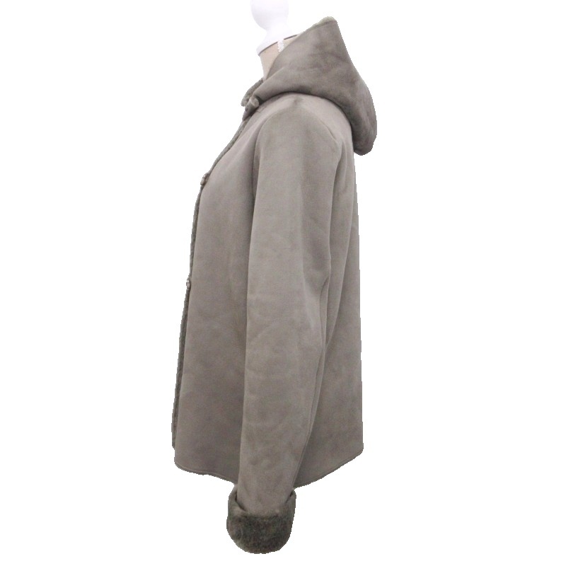 ロッソ ROSSO アーバンリサーチ 美品 フェイクムートンコート ジャケット 裏ボア フード F グレー ベージュ 系 ■YHS3 レディース