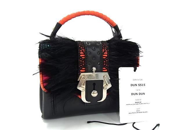 1円 ■美品■ PAULA CADEMARTORI パウラ カデマルトーリ レザー×フェザー ラインストーン ワンハンドル ハンドバッグ ブラック系 FR4595