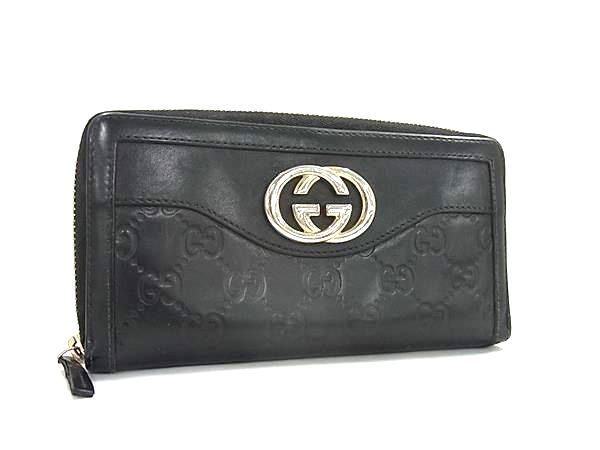 1円 GUCCI グッチ 308012 インターロッキングG グッチシマ レザー ラウンドファスナー 長財布 ウォレット 小銭入れ ブラック系 FV2337
