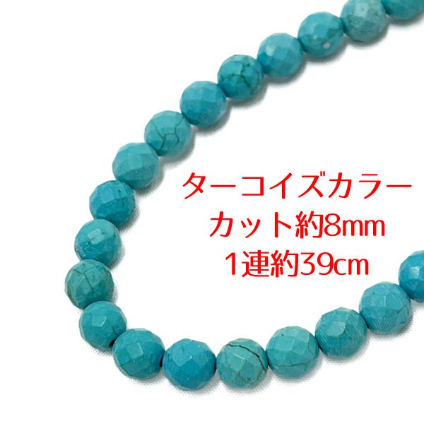 【AFP】天然石 ターコイズカラー カット 約8mm 1連 約39cm パーツ ハンドメイド アクセサリー DIY 19-cbb8