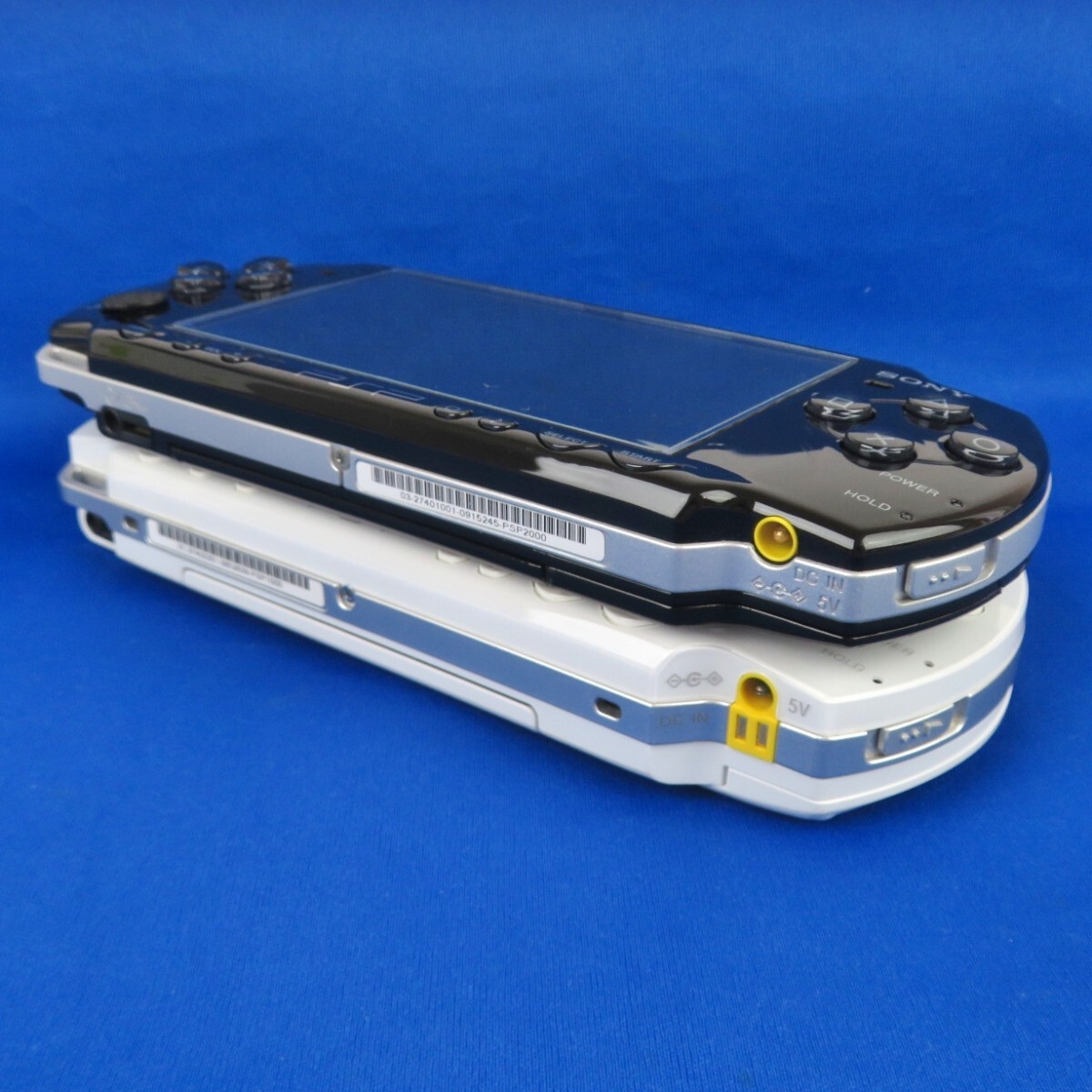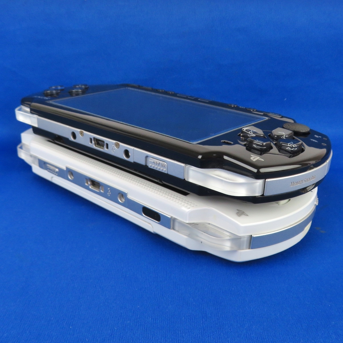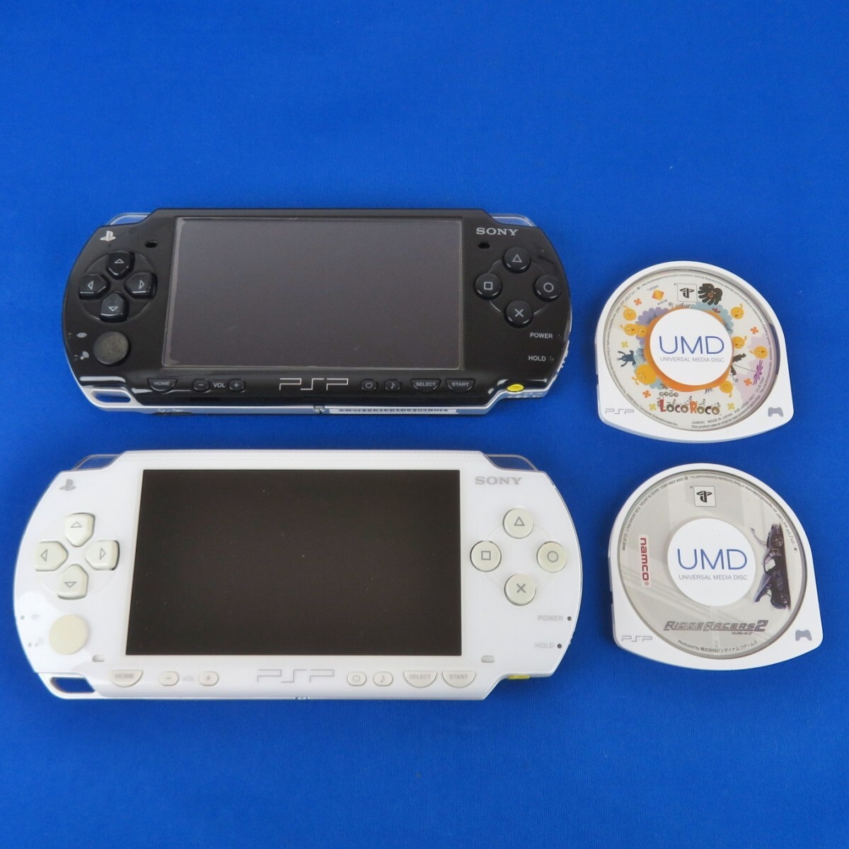 ブラックのPSPの画面には保護シートが貼られていますが、端の浮きや小傷が見られます。