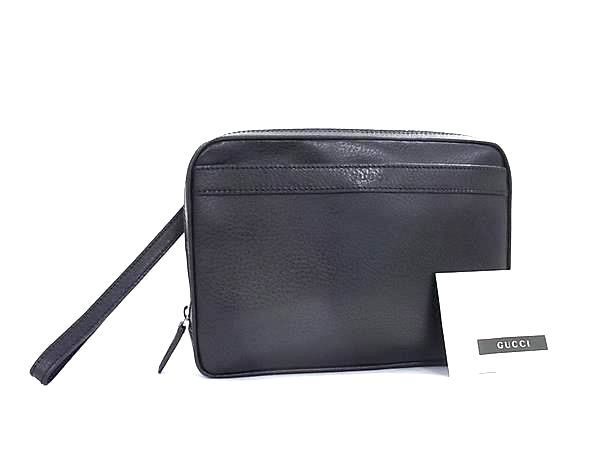 1円 ■美品■ GUCCI グッチ レザー クラッチバッグ セカンドバッグ メンズ ブラック系 DB2949