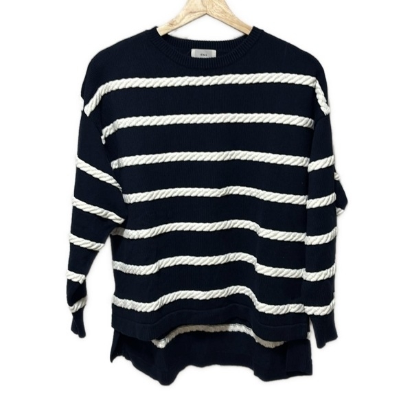 イエナ IENA 長袖セーター/ニット - ダークネイビー×白 レディース クルーネック/ボーダー 美品 トップス