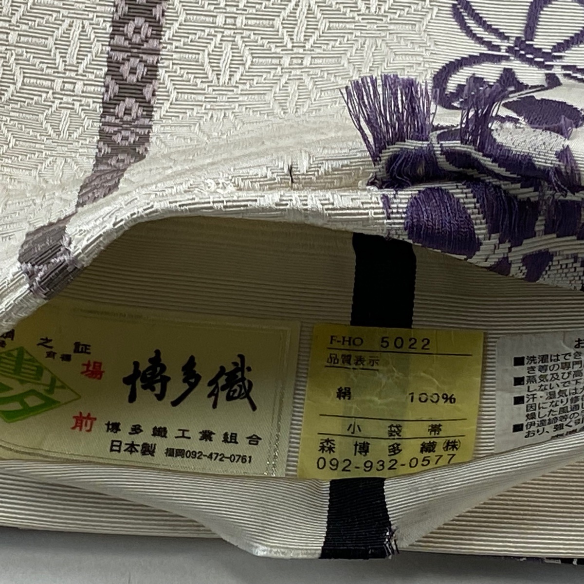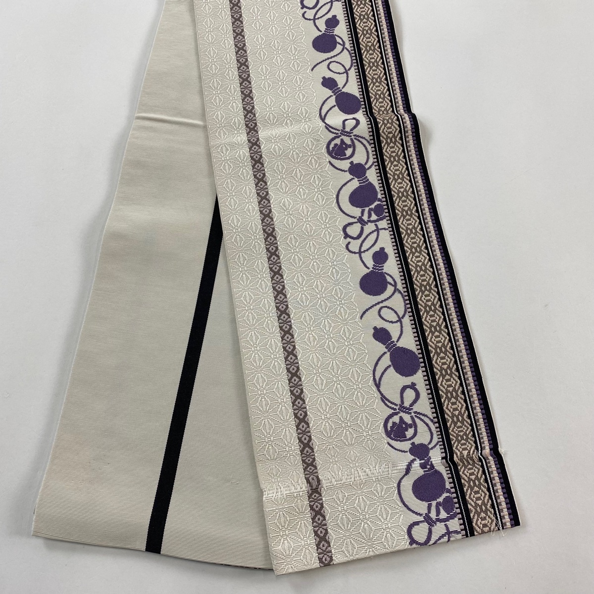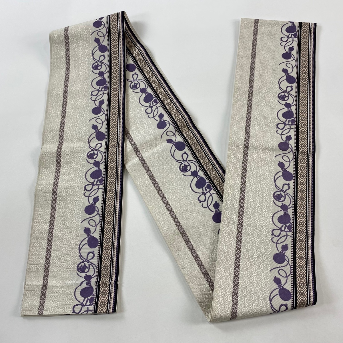 半幅帯 秀品 証紙 博多織 瓢箪 麻の葉 クリーム 正絹 【中古】 |