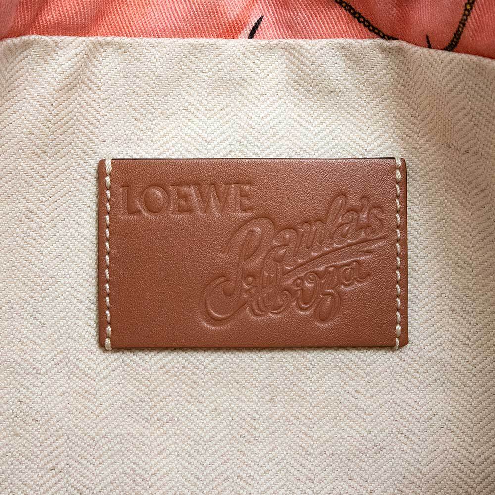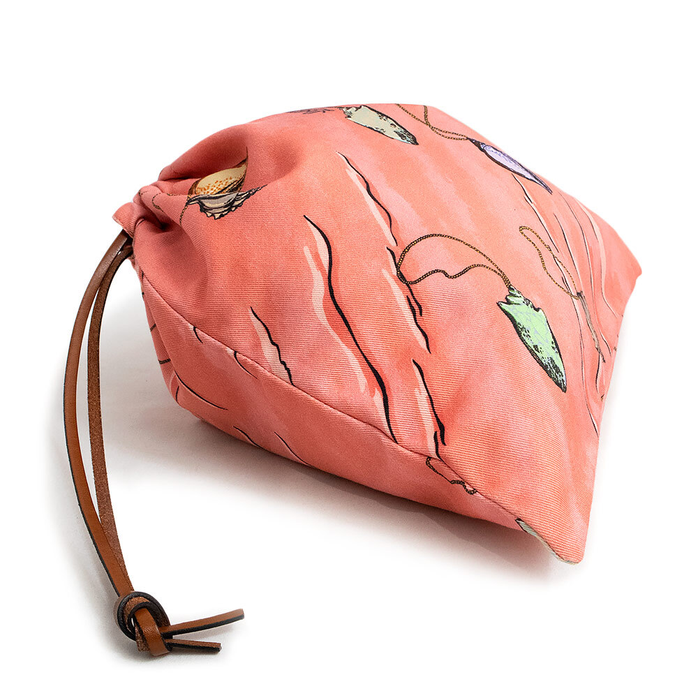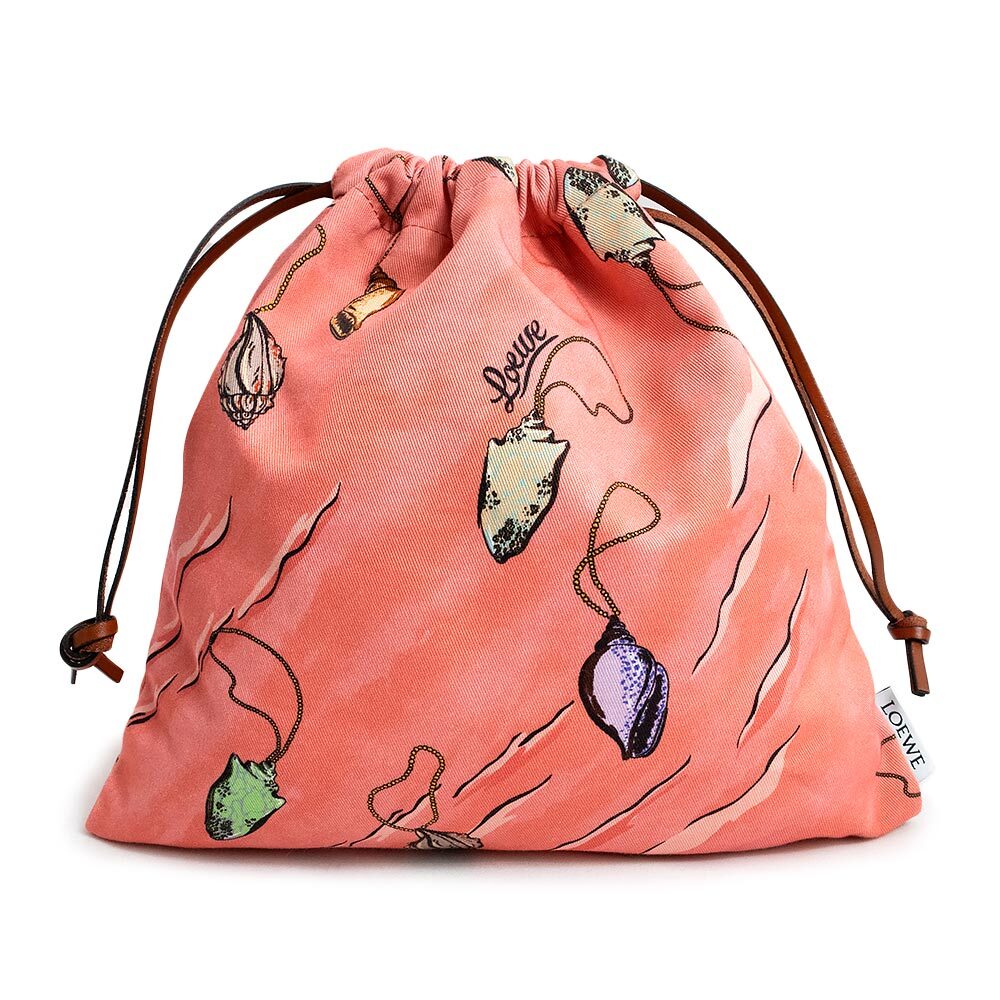 シェルプリントキャンバスのドローストリングポーチ。イビザ島の自然を彷彿とさせる鮮やかな色合いのポーチです。 単独で、またはロエベのバスケット内で使用可能。いつものお使いのバッグのインナーバッグとしてもお使いいただけます。