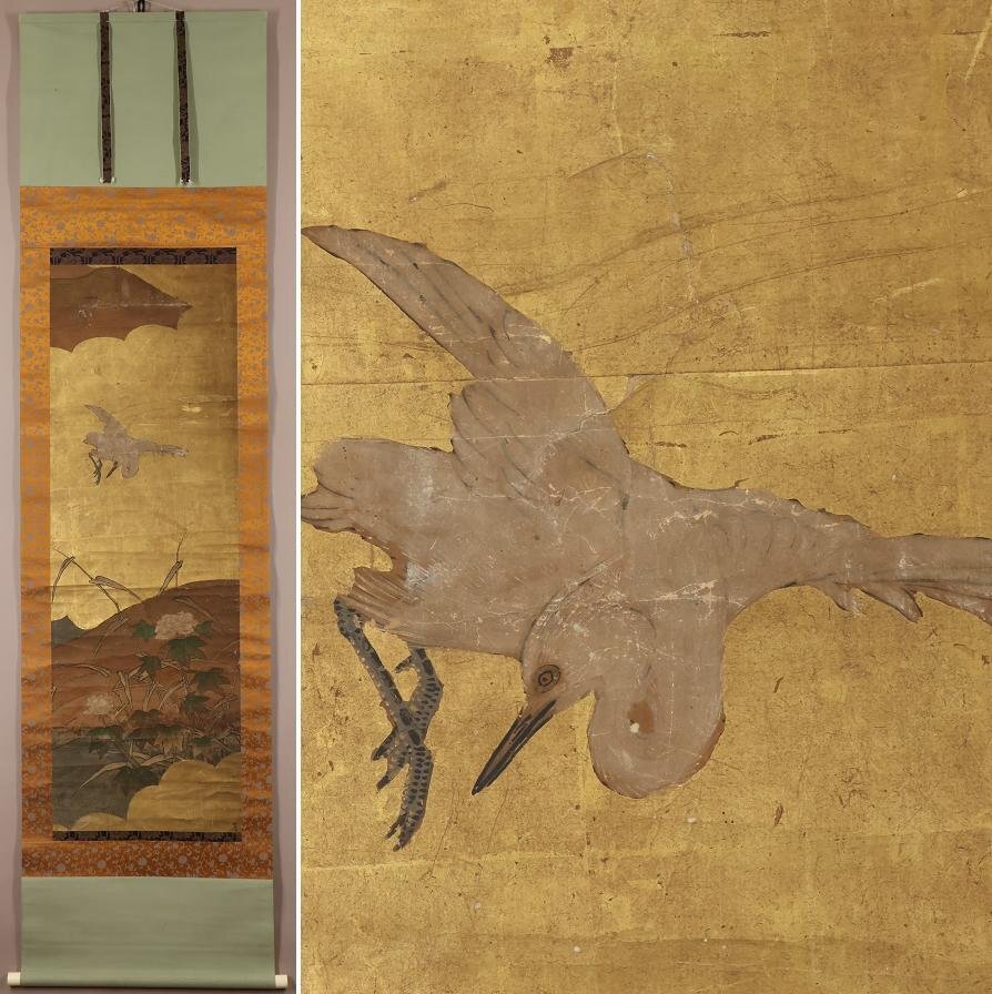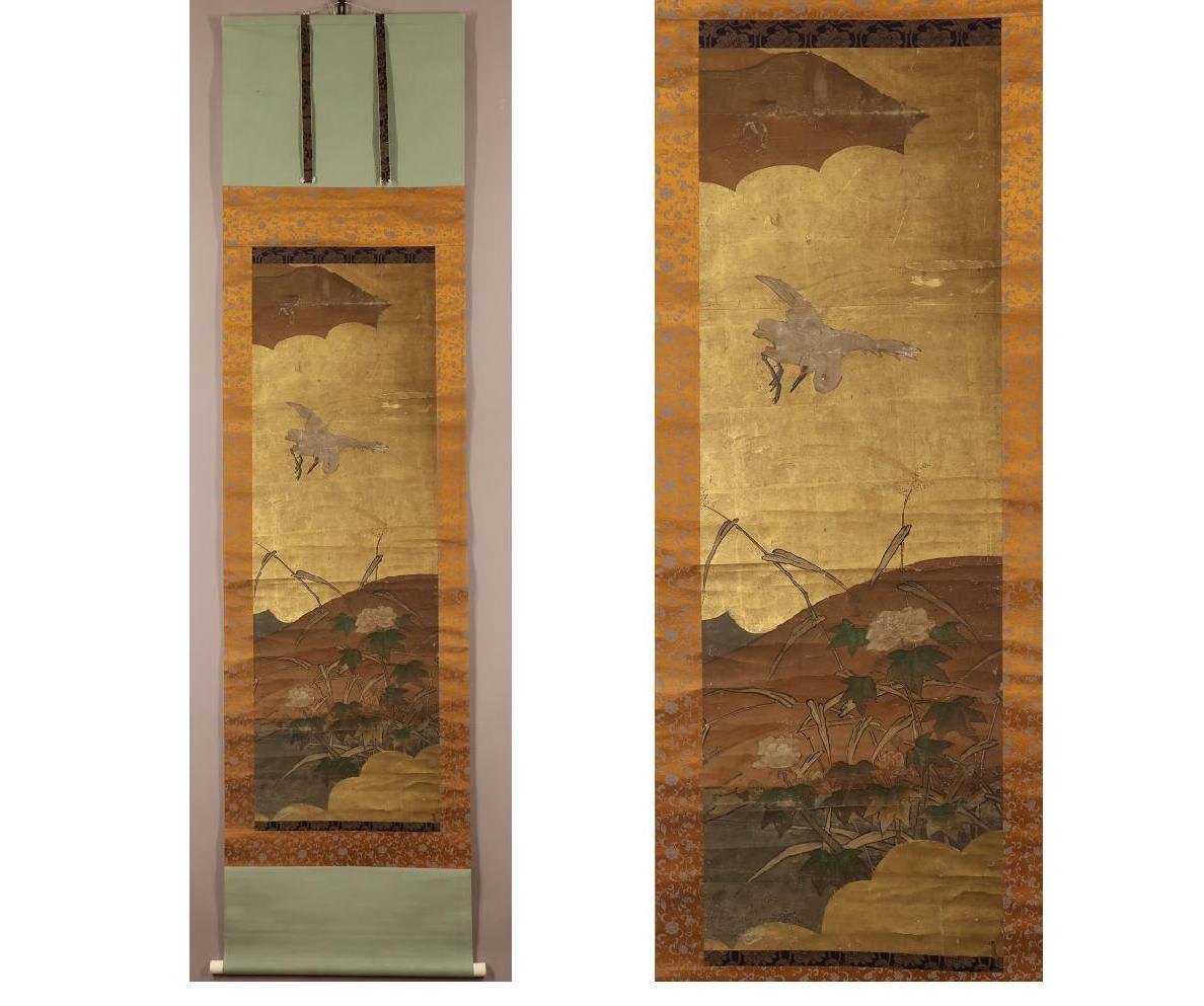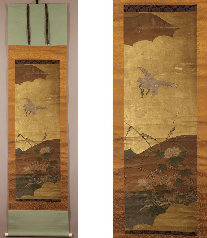 【無落款】琳派◆古画◆花鳥図◆祖:俵屋宗達◆肉筆◆紙本◆掛軸◆w863