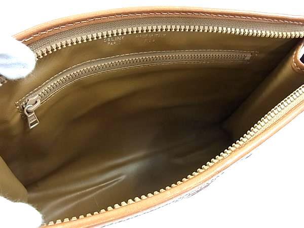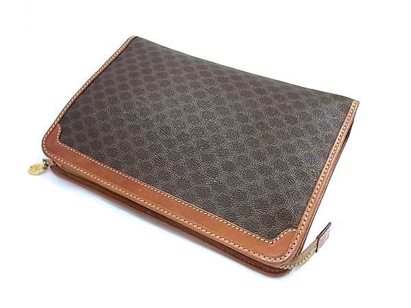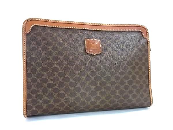 1円 ■美品■ CELINE セリーヌ マカダム柄 PVC×レザー クラッチバッグ セカンドバッグ レディース ブラウン系 FV0340