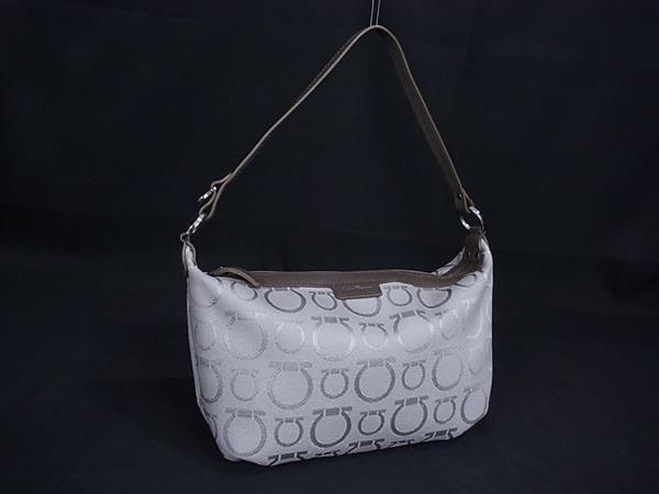 1円■美品■ Salvatore Ferragamo フェラガモ AU 22 6123 ガンチーニ柄 キャンバス ワンハンドル ハンドバッグ アイボリー系 FR5014