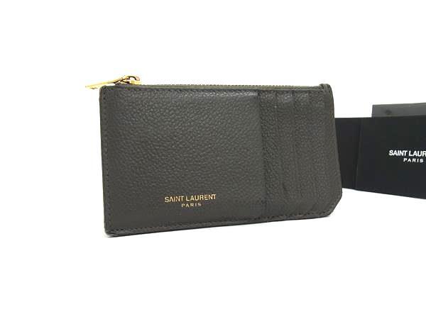1円 SAINT LAURENT サンローラン レザー カード入れ カードケース 定期入れ コインケース コインパース 小銭入れ メンズ グレー系 FT1641
