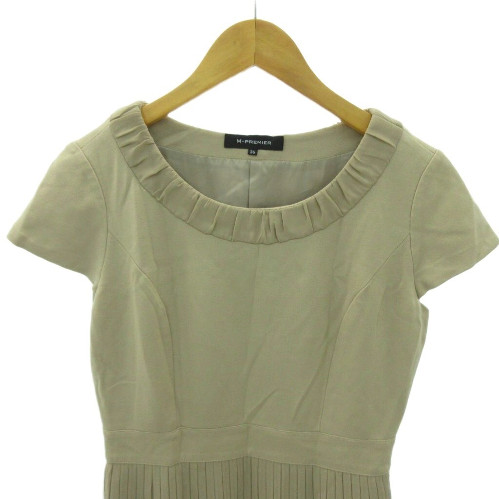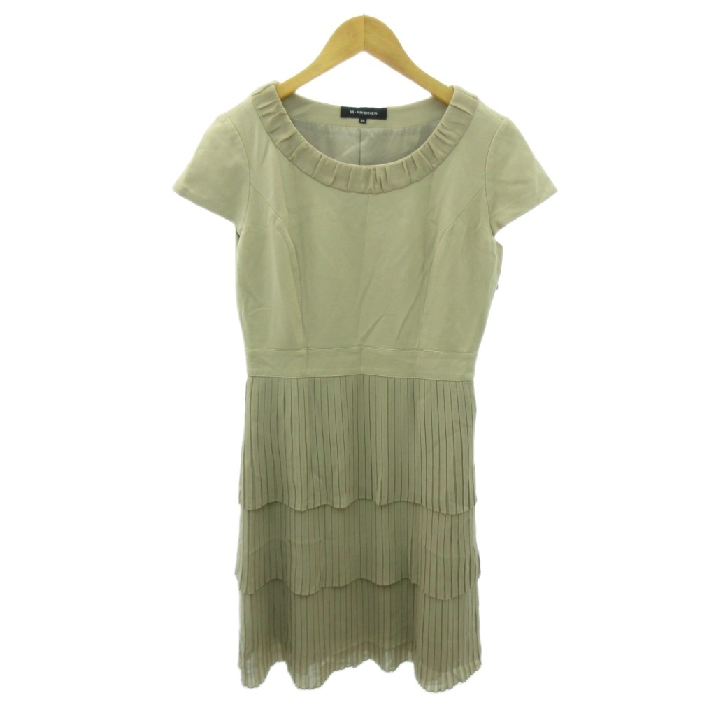 エムプルミエ M-Premier ティアードワンピース プリーツ フリル フレンチスリーブ ひざ丈 36 ベージュ 0926 ■YHS4 レディース