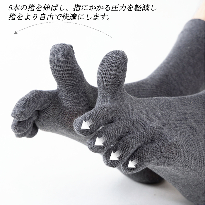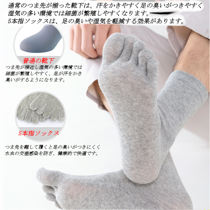 通常の靴下と比べ、5本指なので通気性有りで蒸れにくいので防臭、水虫対策にも。伸縮性のある履き心地良い生地で日常や通勤(仕事用)にも最適。嬉しい5足セットメンズサイズ 24cm~28cm材質:コットン