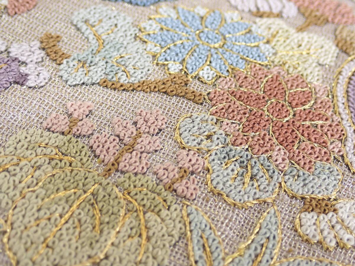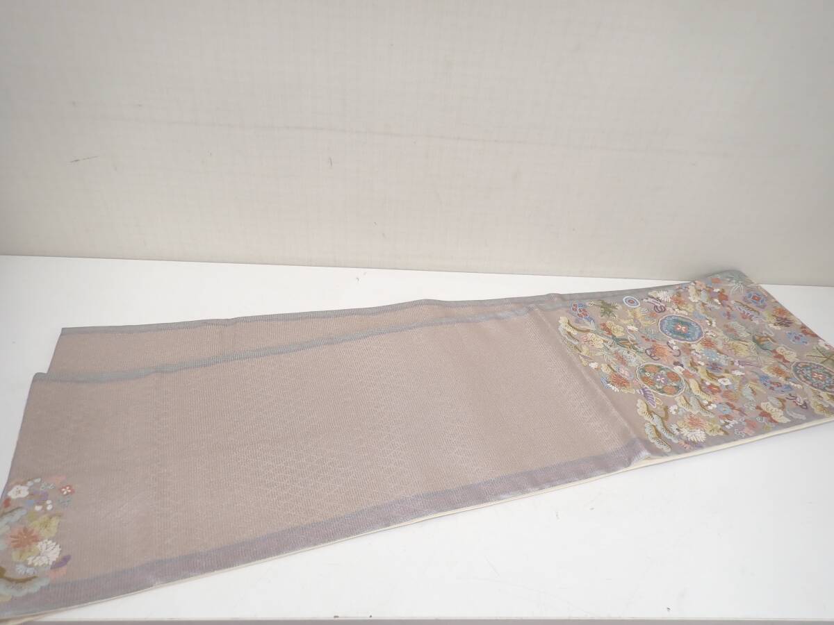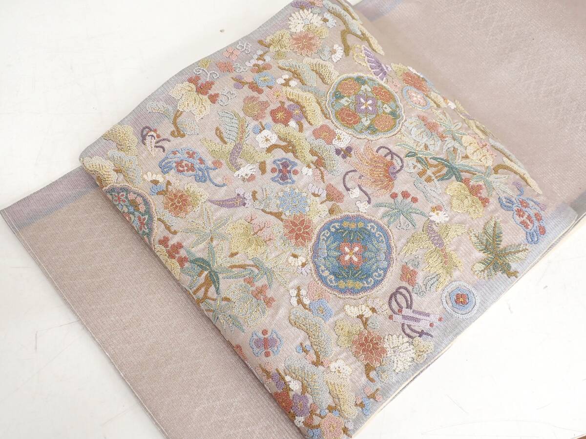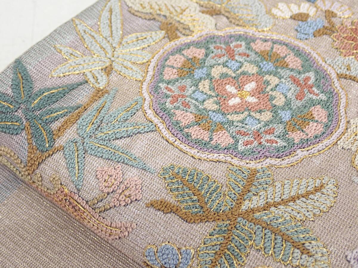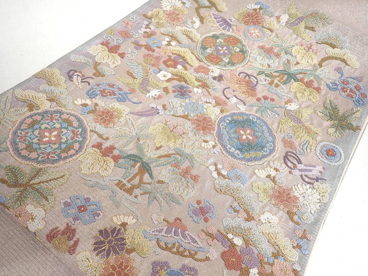 逸品 正絹 袋帯 豪華 中国三大刺繍 相良刺繍 手刺繍 金糸 31.3cm×446cm 松竹梅 鳳凰 太鼓柄 | ||||