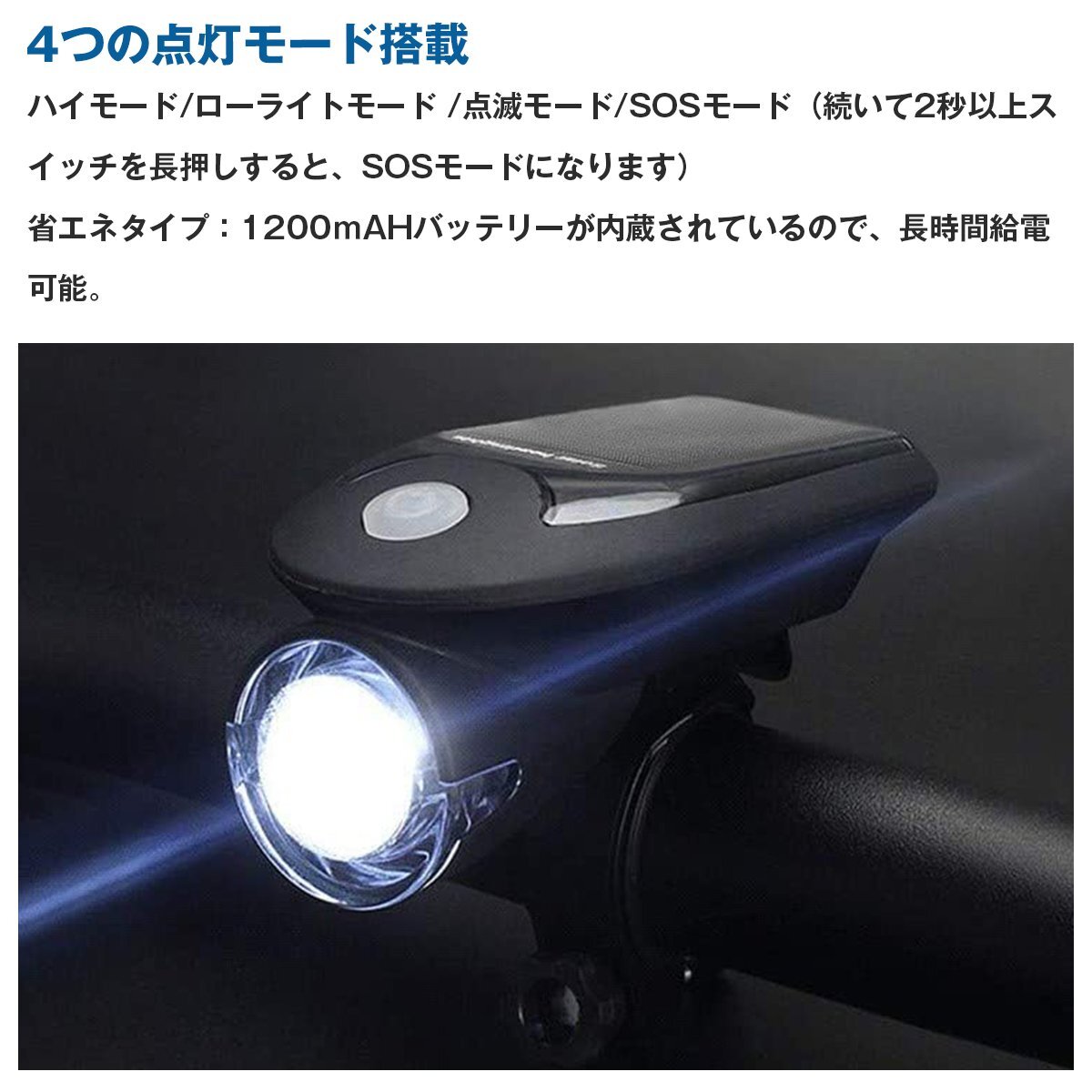 『訳アリ商品』自転車用 LEDライト 4点灯モード搭載 ソーラー&USB 防水 IP64 ホルダー付き ヘッドライト